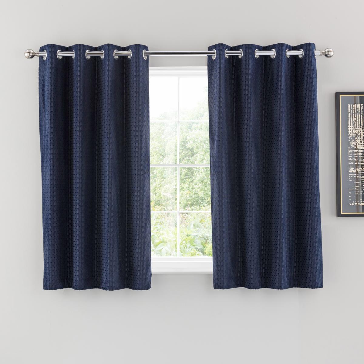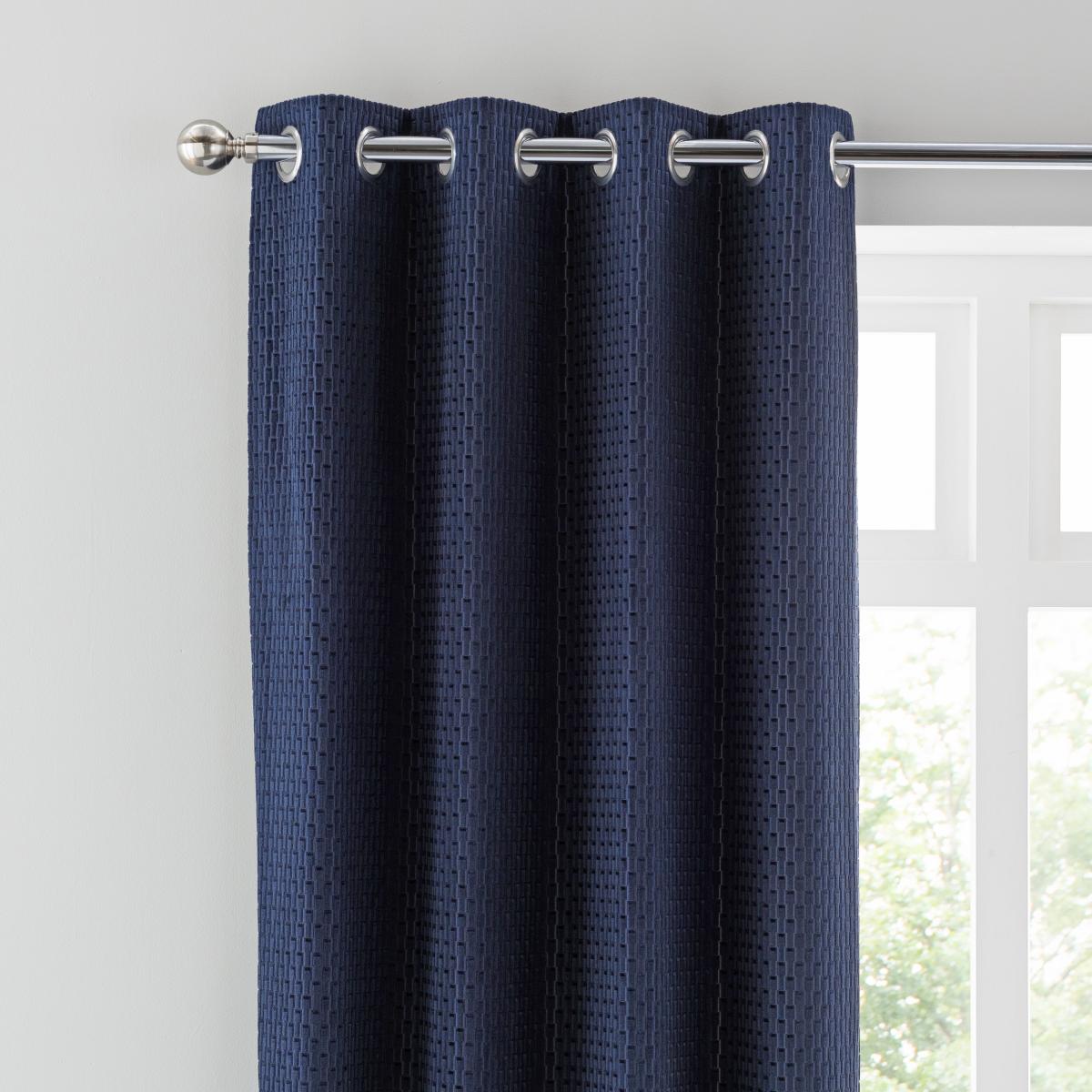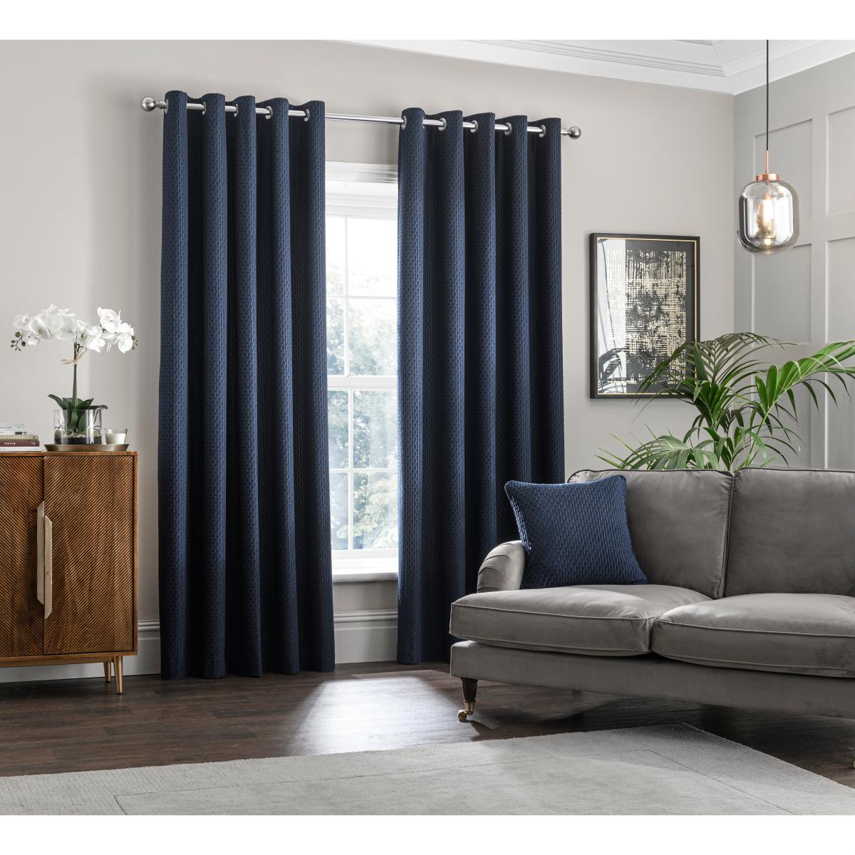 Transform your living space with the charming Melrose Eyelet Curtains. Dressed in a navy colourway, these curtains exude timeless elegance and bring a touch of luxury to any room. Designed with attention to detail, these curtains seamlessly combine style and functionality, bringing a touch of contemporary sophistication to any room. Featuring a modern eyelet curtain design, these curtains offer a seamless installation process. The eyelets effortlessly slide onto your curtain rod, allowing for smooth and easy opening and closing. Boasting a minimalist geometric design, the Melrose Eyelet Curtains add a touch of contemporary flair to your interior: the subtle pattern enhances the visual appeal of the curtains without overpowering the overall aesthetic of your room. Fully lined for improved insulation and privacy, these curtains offer both practicality and comfort. The lining helps to keep out unwanted drafts, ensuring your space remains cosy and energy-efficient, whilst providing an extra layer of privacy that allows you to relax and unwind without any disturbances.