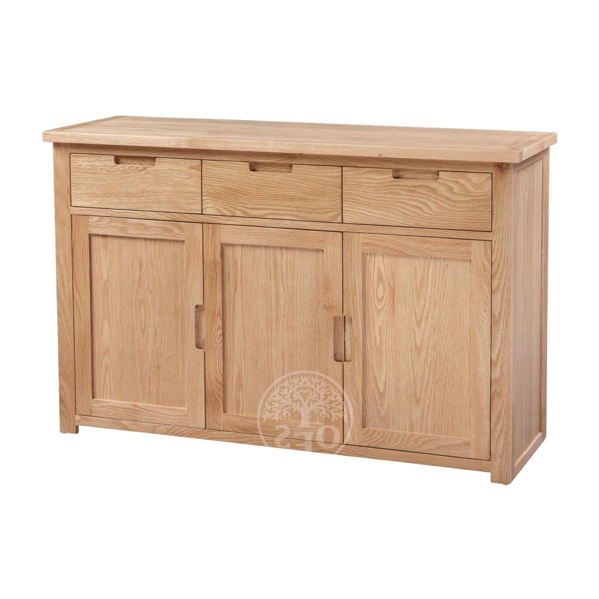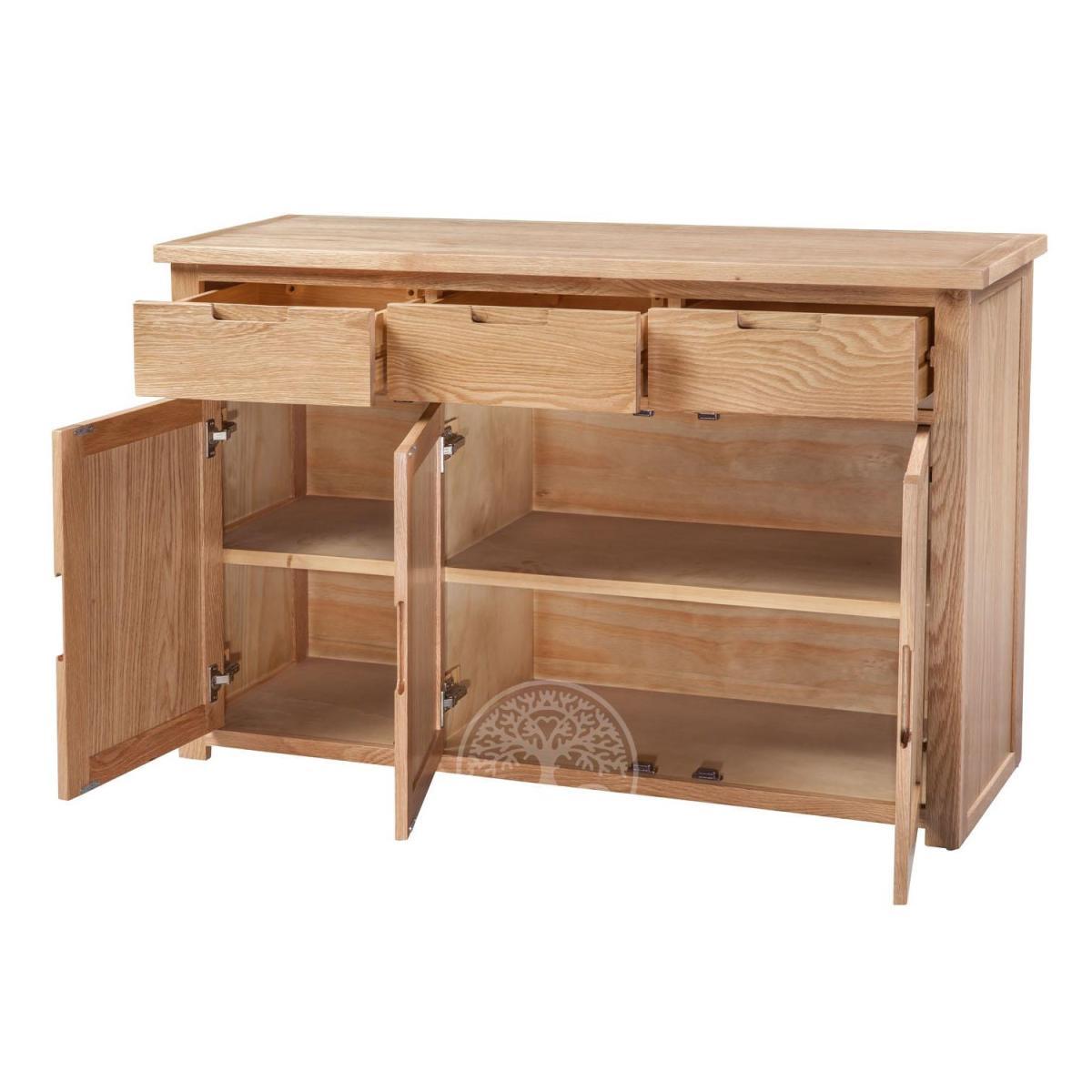 If you’re looking for a quick, one-stop solution for plentiful storage room, the Melrose Large Sideboard could be your answer. It offers a generously sized double cupboard and one single cupboard, both of which have one internal shelf, as well as three roomy drawers. Plus, its spacious top expanse offers the perfect surface on which to display photos, ornaments and lamps. Made from oak and pine, the Melrose Sideboard offers reassuringly heavy quality that will imbue your house with its warm, oaky tones. However, thanks to its clean and mimalist design, it’s not overtly rustic, meaning it’ll fit most styles of décor. The finishing touch is provided by its cut-out handles, which eliminate the need for knobs and streamline the overall look perfectly.