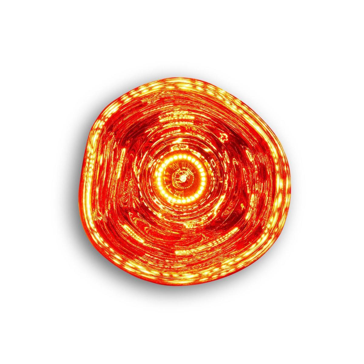 With its soft, curved, organic shape, Melt reminds us of a drop of molten glass or metal! Tom Dixon got together with the Swedish collective Front to create this "distorted" collection with its fascinating optical effect: when it is lit, Melt becomes completely hypnotic! This deformed sphere is made of an innovative material: a clever blend of polycarbonate with a few microns of copper, gold or chrome. This very special metallic finish allows Melt to change and look totally different! Indeed, when the light is off, the metallic shade is opaque and reflective. Once the light is on, the lampshade becomes translucent like glass: the material is dressed in beautiful deep reflections, playing with light, colour, transparency and depth. PLEASE NOTE: This lamp can be used as a ceiling light or wall lamp. It is equipped with a long cable with a plug on the end (for mains connection). There is no switch: you have to plug in / unplug the cable to turn the light on and off. To use it as a wall or ceiling lamp, you need to cut the cable in order to connect it directly to the wall or ceiling. PLEASE NOTE: comes with a universal socket system (suitable for UK and EU sockets). You just need to unscrew the casing placed on the UK plug (with a screwdriver) to free the EU plug.