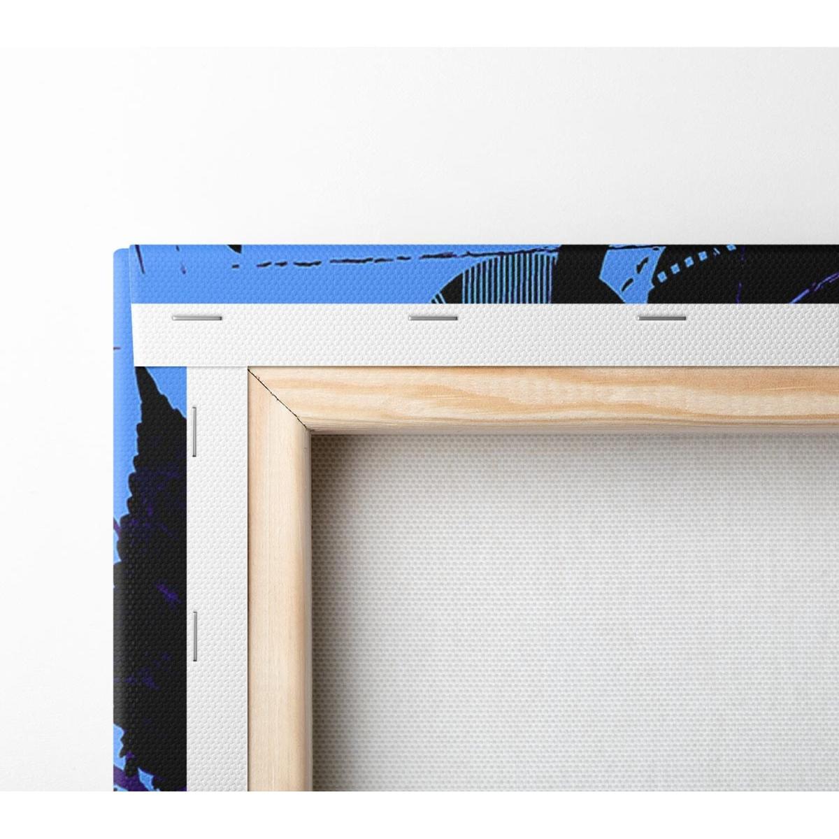 Canvas printed on coated polyester canvas. Mounted on to a 44mm box frame, ready to hang.