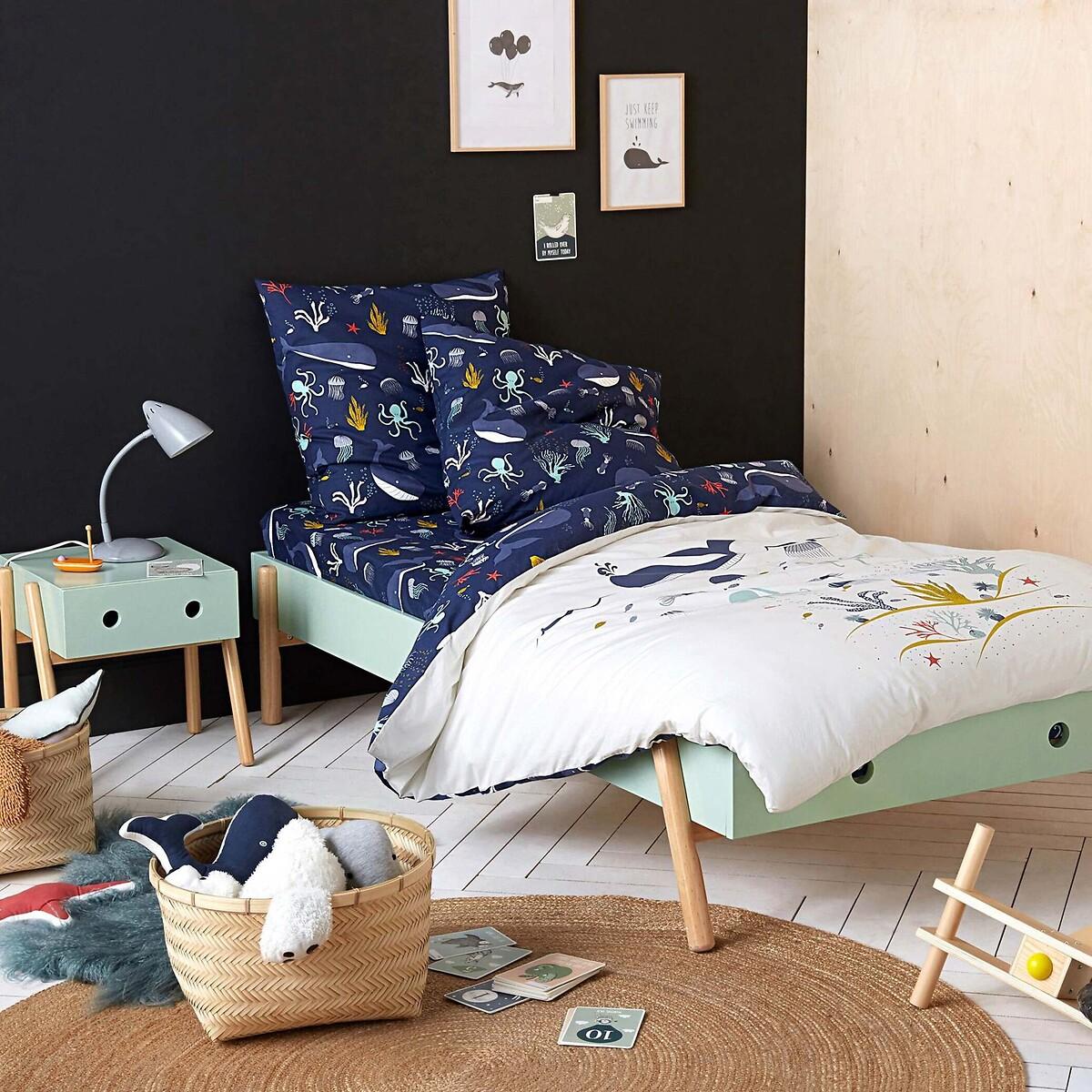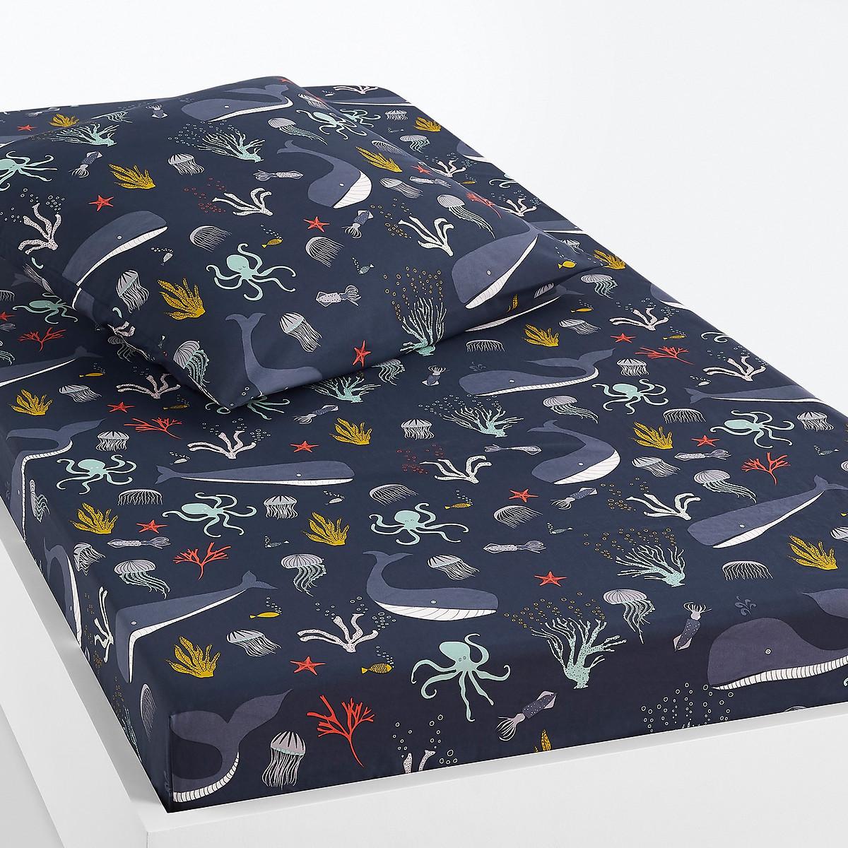 I love this ocean-themed sheet for its playful yet sophisticated print, making it a versatile addition to any child's room. The Naval navy background pairs well with neutral, pastel, or bold colour schemes, and it’s a great way to bring a touch of maritime charm without overpowering the space. It’s perfect for contemporary interiors, nautical themes, or even a relaxed coastal vibe. Practical styling tips include pairing it with soft linen or cotton cushions and accessories in shades of white, grey, or bright coral to elevate the look while keeping it practical for everyday use. This sheet is ideal for creating a child’s space that feels both fun and stylish, without compromising on comfort or quality.