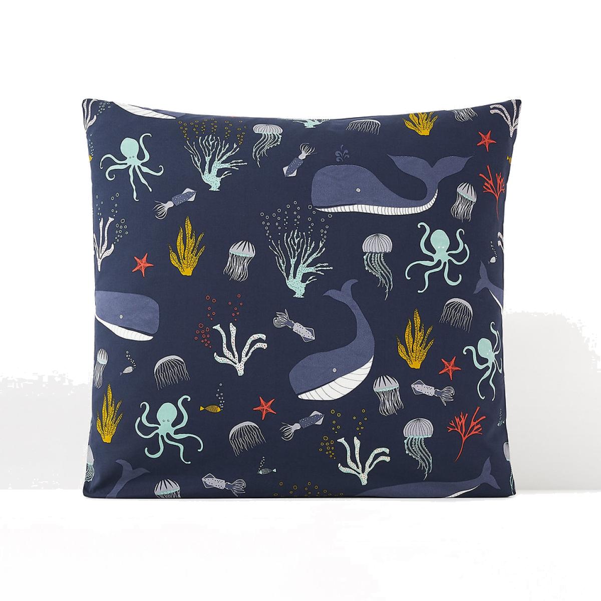 The Melvil child's cotton pillowcase: Patterned with aquatic animals for a marine adventure.