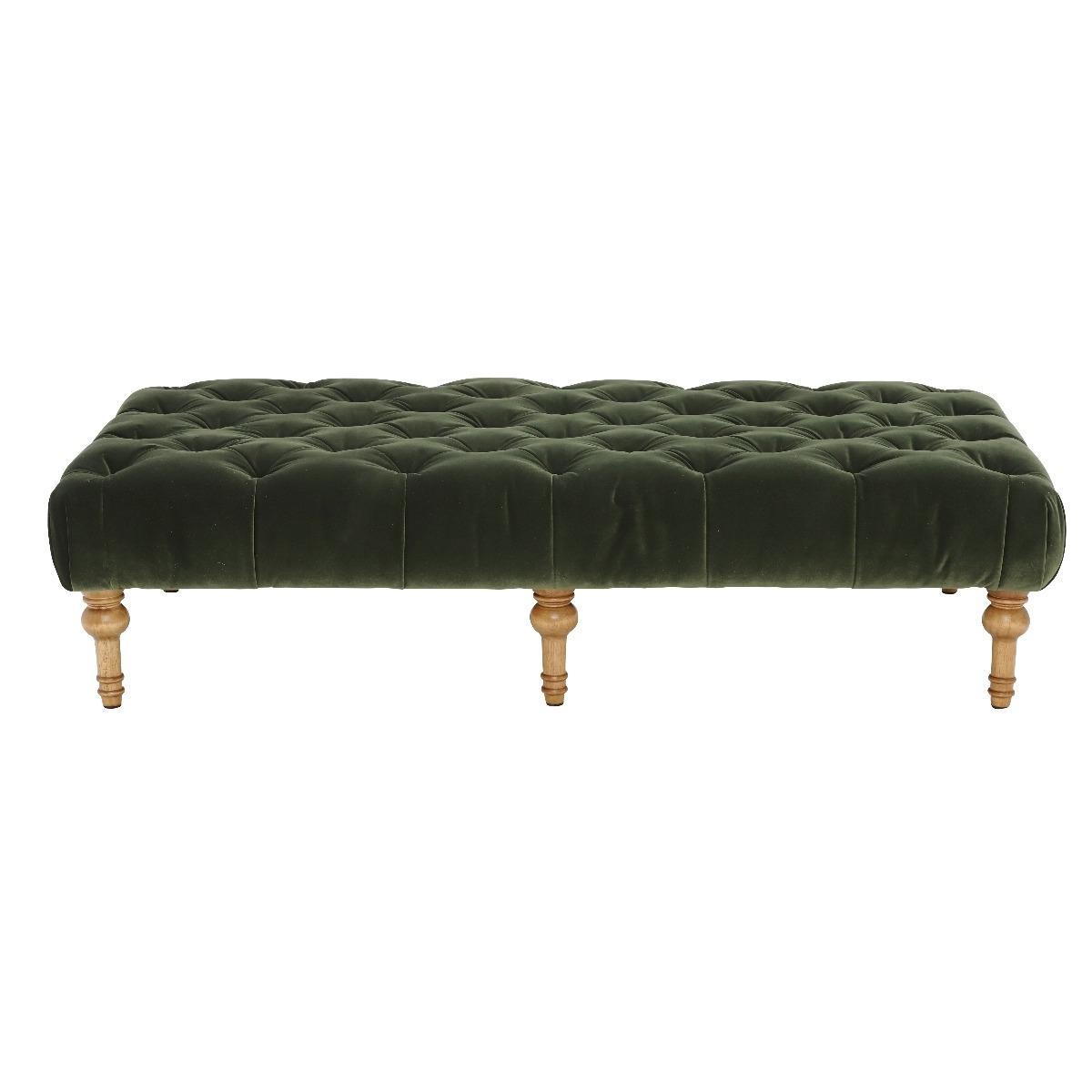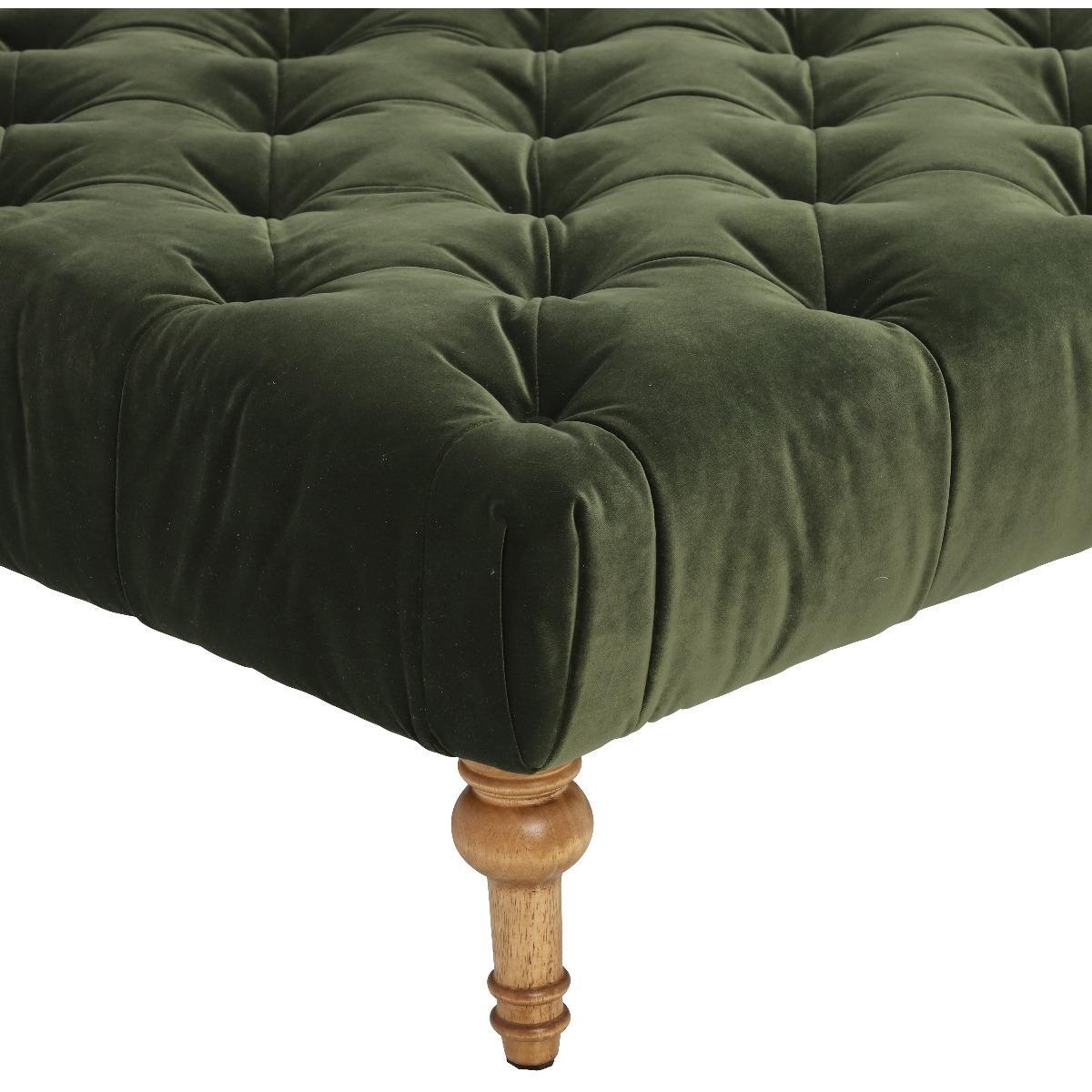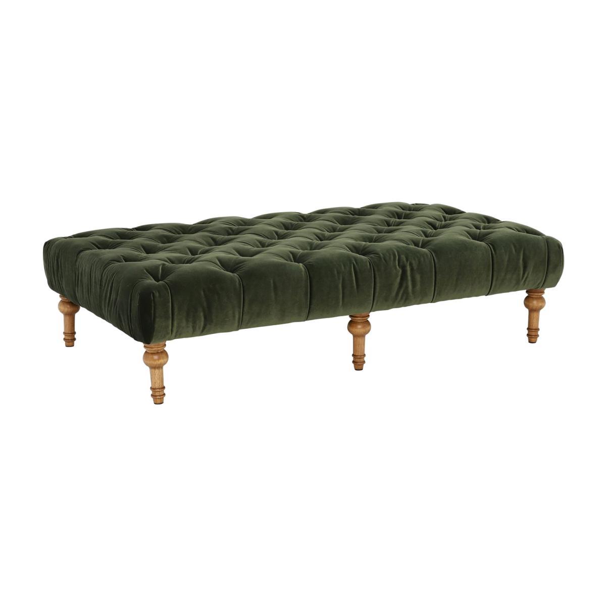 I love this piece for its versatile style and timeless appeal. The deep green velvet gives it an elegant yet understated look, making it a great addition to both classic and contemporary interiors. It works particularly well in living rooms and reading nooks, where it can serve as extra seating or a cosy footrest. For styling tips, consider pairing it with neutral-toned sofas or contrasting with bold patterns for visual interest. Its tufted design adds texture, so keep surrounding accessories subtle for a balanced look, or layer with colourful cushions to create a more eclectic vibe. Its wooden legs also make it easy to incorporate into various colour schemes and decor styles.
