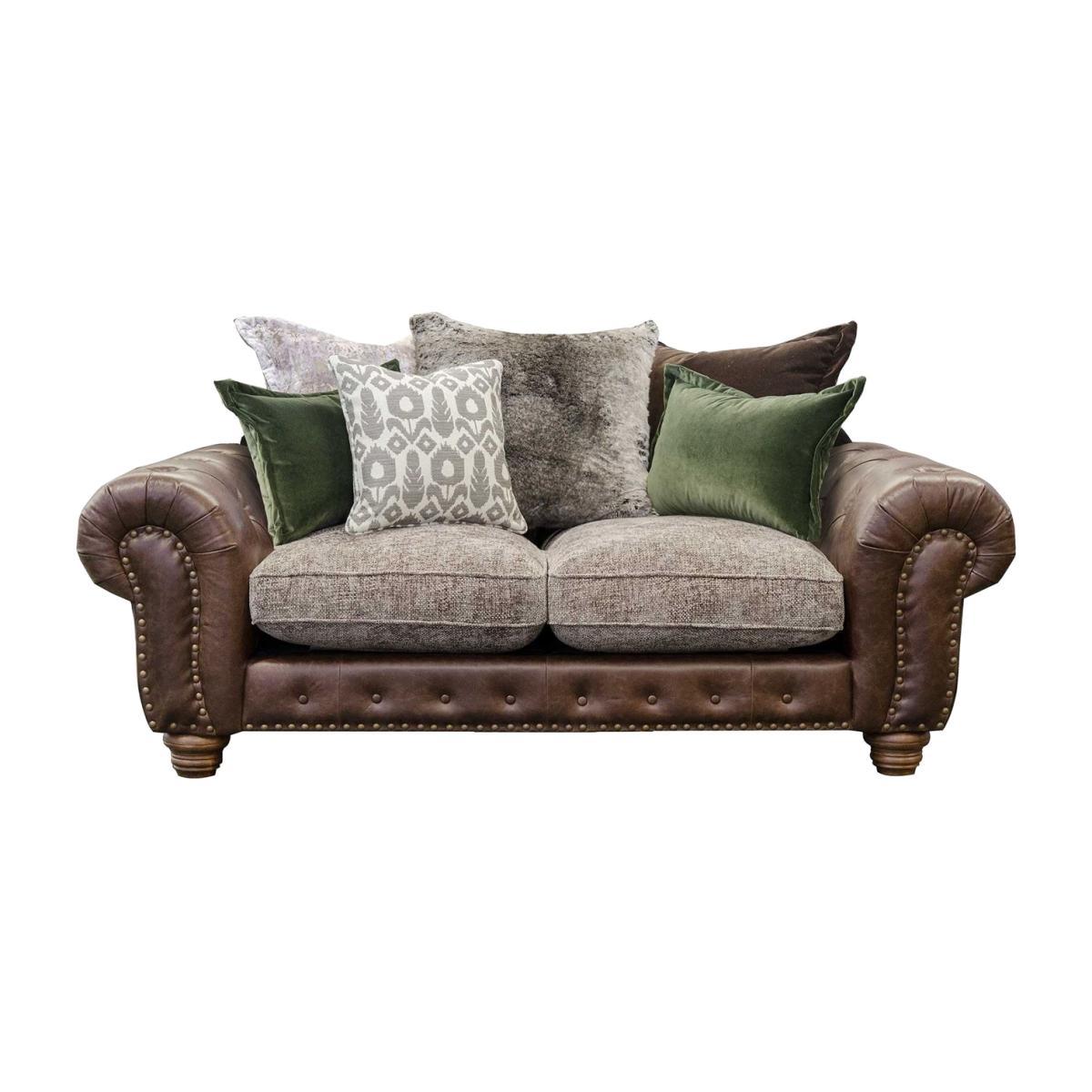 Design. An ideal space-saver that doesn’t lack in style, the Melville Small Sofa oozes luxury through curvaceous arms, plump cushioning upholstery and contrasting scatters that offer tactile textures that you won’t be able to keep your hands off. A practical choice for smaller spaces, the Melville features zig-zag spring suspension and foam, fibre wrap and feather cushioning to provide durable and comfortable support – while neutral tones and attention to detail studwork, buttons and turned wood feet complete its grand appeal. Satchel Nutmeg, Alpine Stone Seat, Allure Moss Bolsters, Weathered Oak Feet and Antique Studs.