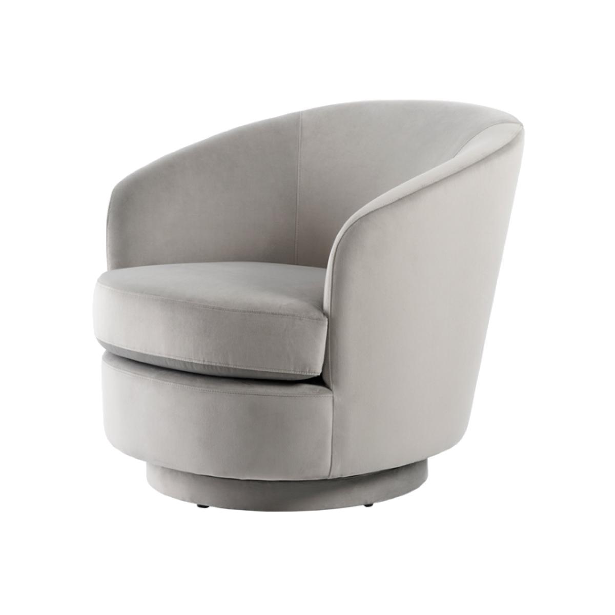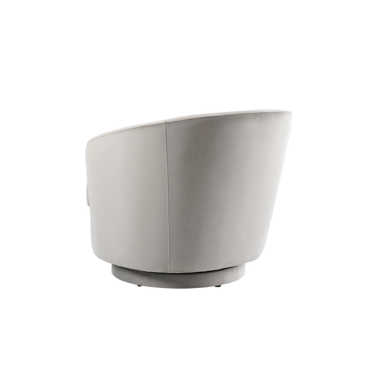 I love the mid-century modern feel of the Melville swivel chair - its rounded shape and soft dove grey tone make it versatile enough to suit various interiors. It works particularly well in contemporary, Scandinavian, or even luxe eclectic spaces, adding a cosy yet stylish seating option. Practical styling tips include pairing it with textured throws or patterned cushions to break up the neutral tone, and positioning it near a statement side table or reading nook to maximise functionality. Its swivel feature not only adds to the comfort but also makes it a user-friendly piece for social or relaxing areas. Overall, it’s a chic and practical addition that brings charm and flexibility to any room.