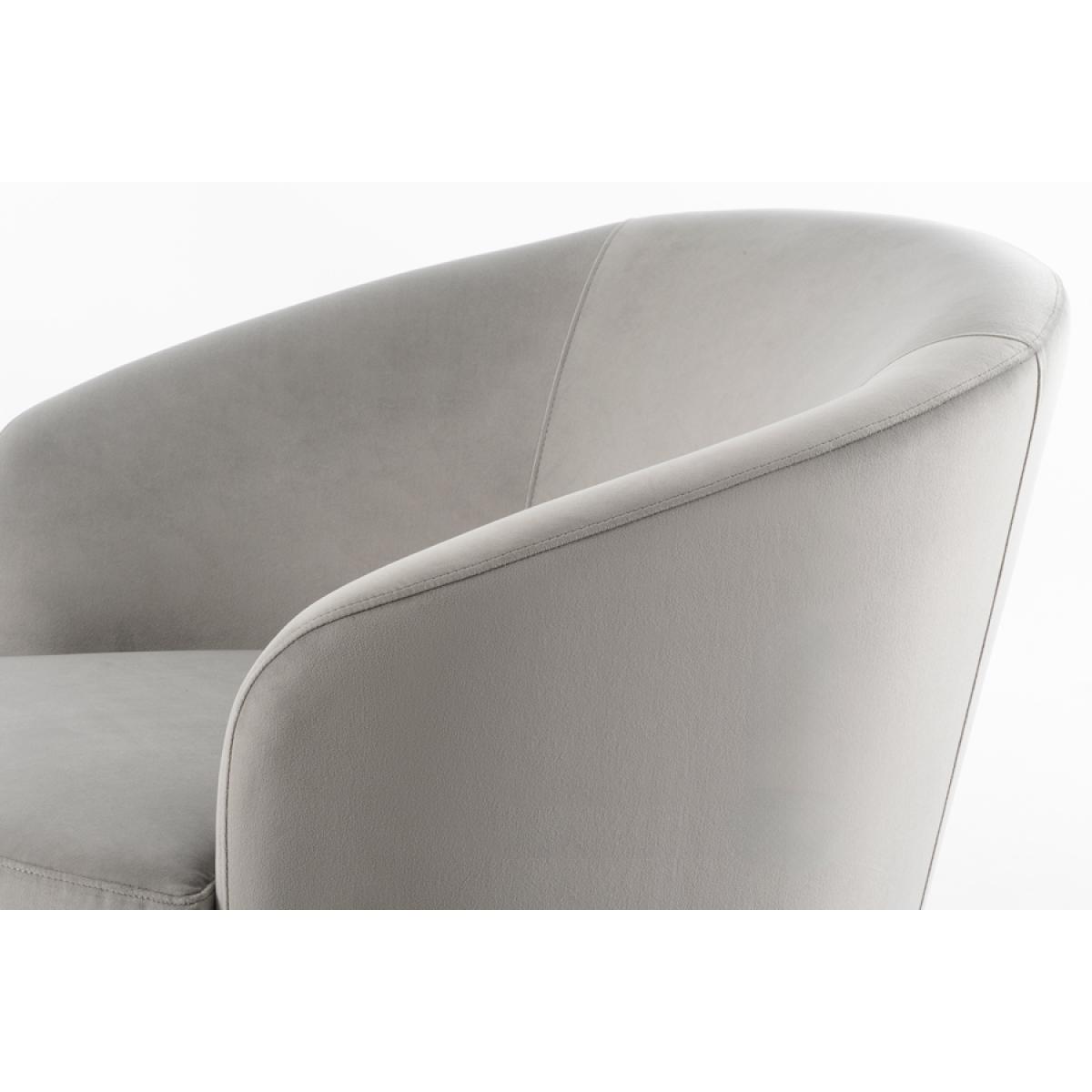 A luxurious and indulgent lounge chair, perfect for reading and watching movies. Very comfortable sprung seat with generous deep padding. Swivel base. Fully upholstered in velvet fabric.