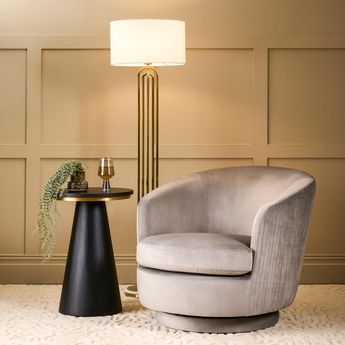 I’m a fan of this dove-grey swivel chair for its clean lines and soft velvet finish - it feels both modern and inviting. Its neutral tone makes it a versatile piece in minimalist, Scandi or contemporary schemes, slotting in perfectly beside a slim metal side table or a pared-back sofa. For styling, try adding a textured cushion in charcoal or muted ochre to break up the grey, and orient the chair near a window or fireplace to create a cosy reading nook. Its swivel base also works well in open-plan spaces, helping to define a seating area without walls.
