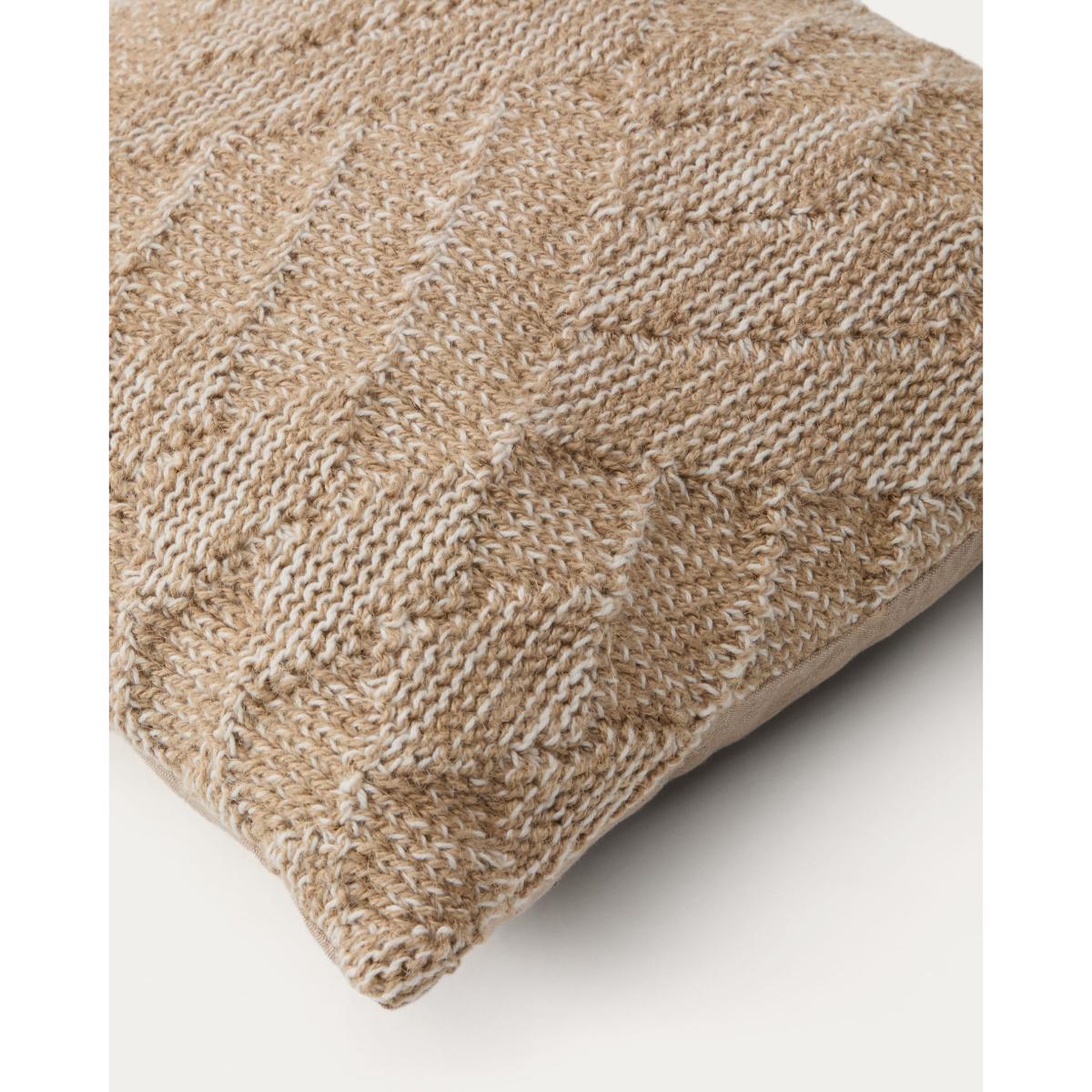 Melyan beige jacquard cotton and jute cushion cover 45 x 45cm
