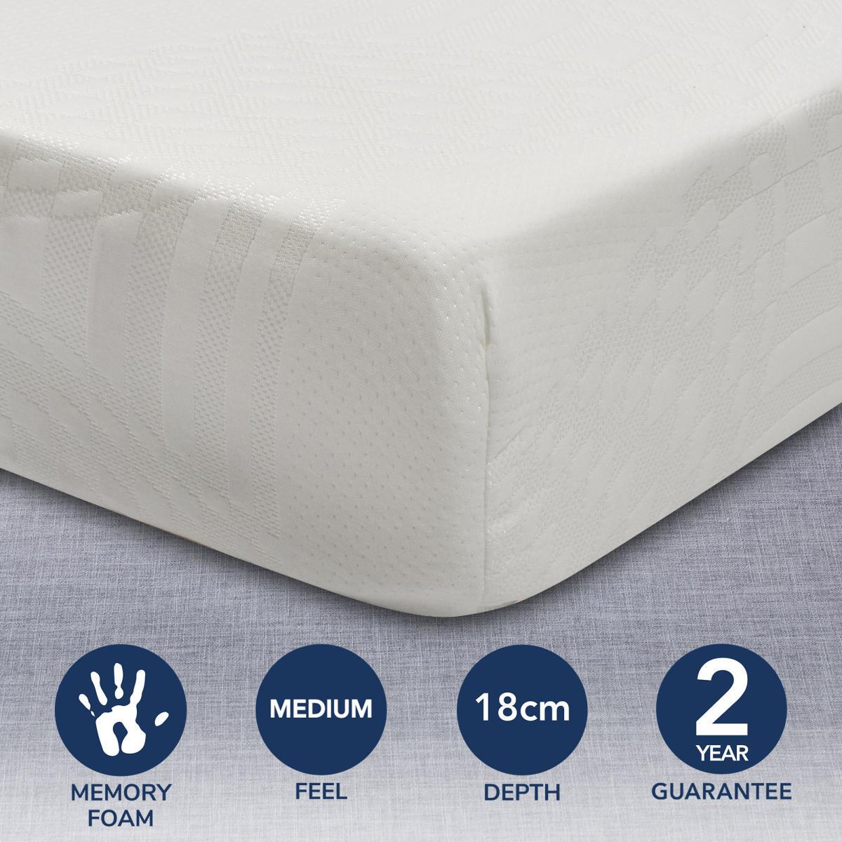This brilliant 18cm deep mattress provides ultimate support including a 4cm top layer of memory foam. The incredible memory foam layer is designed to mould your body, providing you with excellent support and comfort and aid airflow through the mattress. Finished with a soft touch knitted cover with a hint of spring blossom fragrance for that fresh feel, this mattress is delivered rolled for ease of transport and lifting. If available in your local store, this mattress can be purchased via Click and Collect. Need to throw out your old mattress first? View our information on. Mattress recycling and collections. * For health and hygiene reasons, we are unable to offer refunds or exchanges on Mattresses unless they are returned unused and in their original packaging. For more information please see our Easy Returns section. This product is supplied by NBF Approved Members, who have been independently audited against a set of strict criteria and standards set by the National Bed Federation. Contains non-toxic Certipur approved foam.