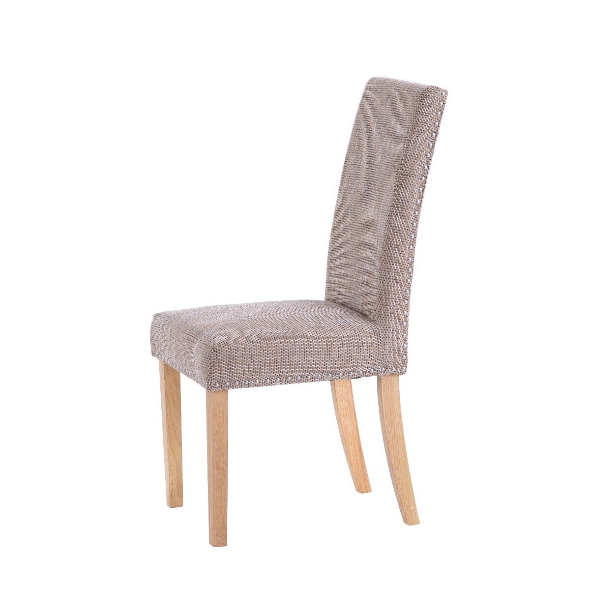 This dining chair will be a sleek addition to your dining room. It has a stylish tweed fabric upholstery that catches the eye. This chair is crafted from durable materials with a sturdy frame. Clean twill finish with sleek stud detailing. Solid oak legs for maximum support. High back for extra support and comfort. Silicon pads for floor protection and stability. Soft padded seat for maximum comfort.