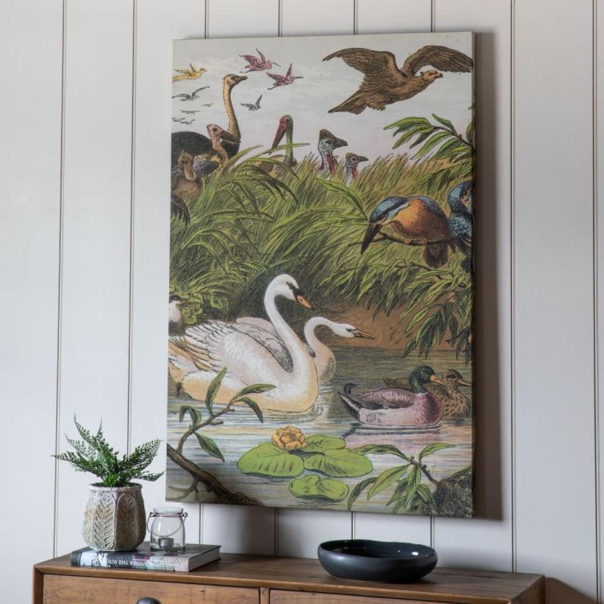 I really like this bird-themed canvas for its bold, detailed illustration and natural colour palette. It works well in casual or eclectic interiors, especially in spaces like living rooms or hallways where a touch of nature-inspired artwork can add warmth and interest. Practical styling tips include pairing it with simple, neutral frames or leaving it unframed for a modern edge, and integrating it with other botanical or wildlife accessories to create a cohesive look. Its generous size has enough presence to anchor a wall, so consider placing it above sideboards or in empty wall spaces to make a statement without overwhelming the room.