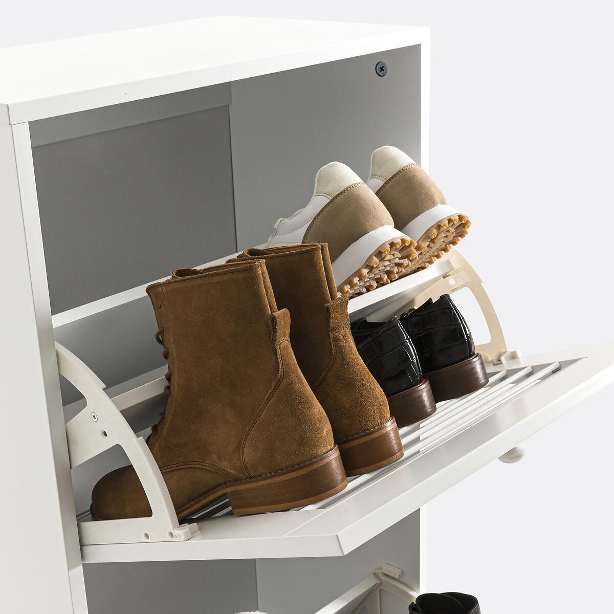 No more shoes scattered all over the house thanks to the Menor 3-door shoe cabinet, which allows you to store up to 12 pairs of shoes.