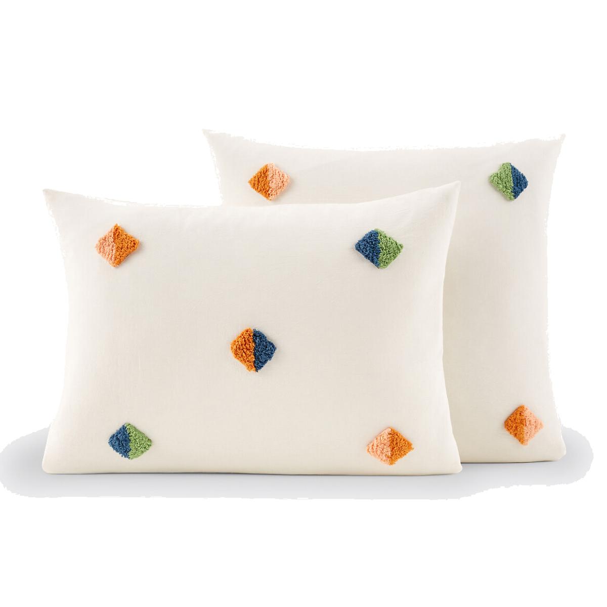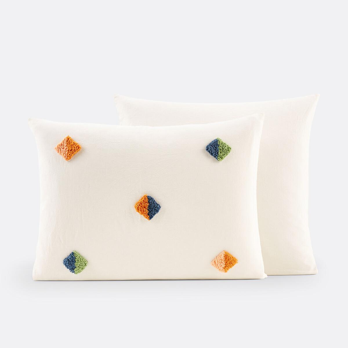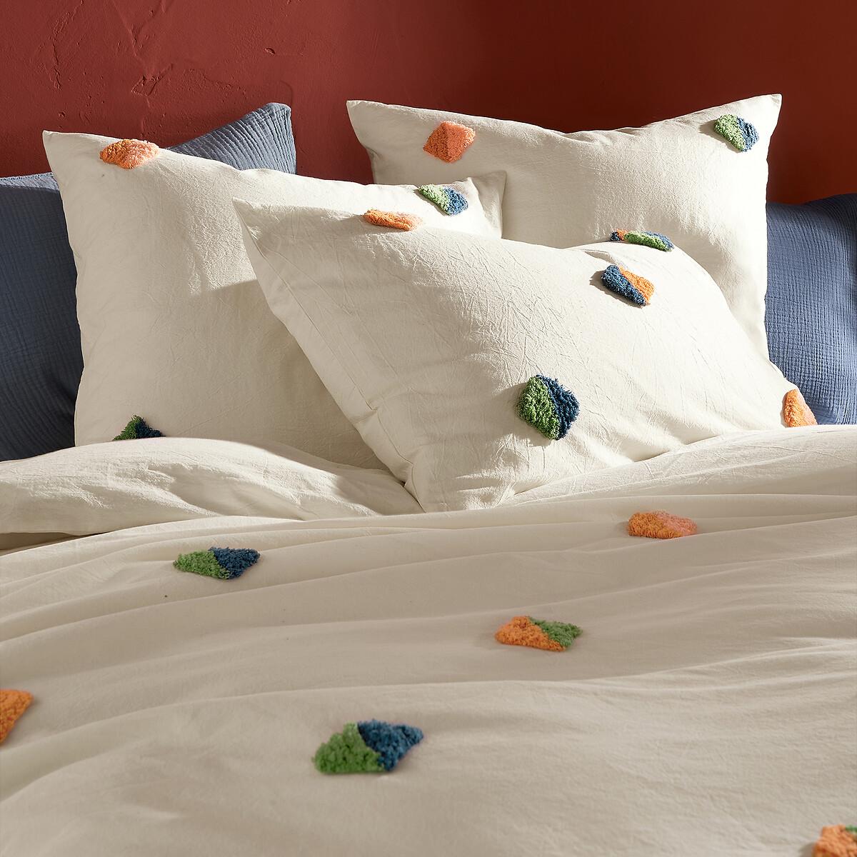 A set of diamonds in traditional colours... a sunny and contemporary design, directly inspired by South America. Mentilla, embellished with colourful tufted patterns, is a creation of our designers at La Redoute Interiors. Cotton is part of our daily lives. We love it for its suppleness and softness. Easy Care, it is ideal for the beds of young and old alike!Product Details • 100% cotton • 144 thread count • Tufted diamond pattern front, plain back. Care Advice • Machine washable at 60°C • By washing your laundry at 40°C instead of 60°C, you limit energy consumption. Dimensions • 50 x 70cm: Rectangular pillowcase • 63 x 63cm: Square pillowcase • OEKO-TEX® Standard 100. Standard 100 certification by OEKO-TEX® tests textile products for harmful substances via an independent, international label.