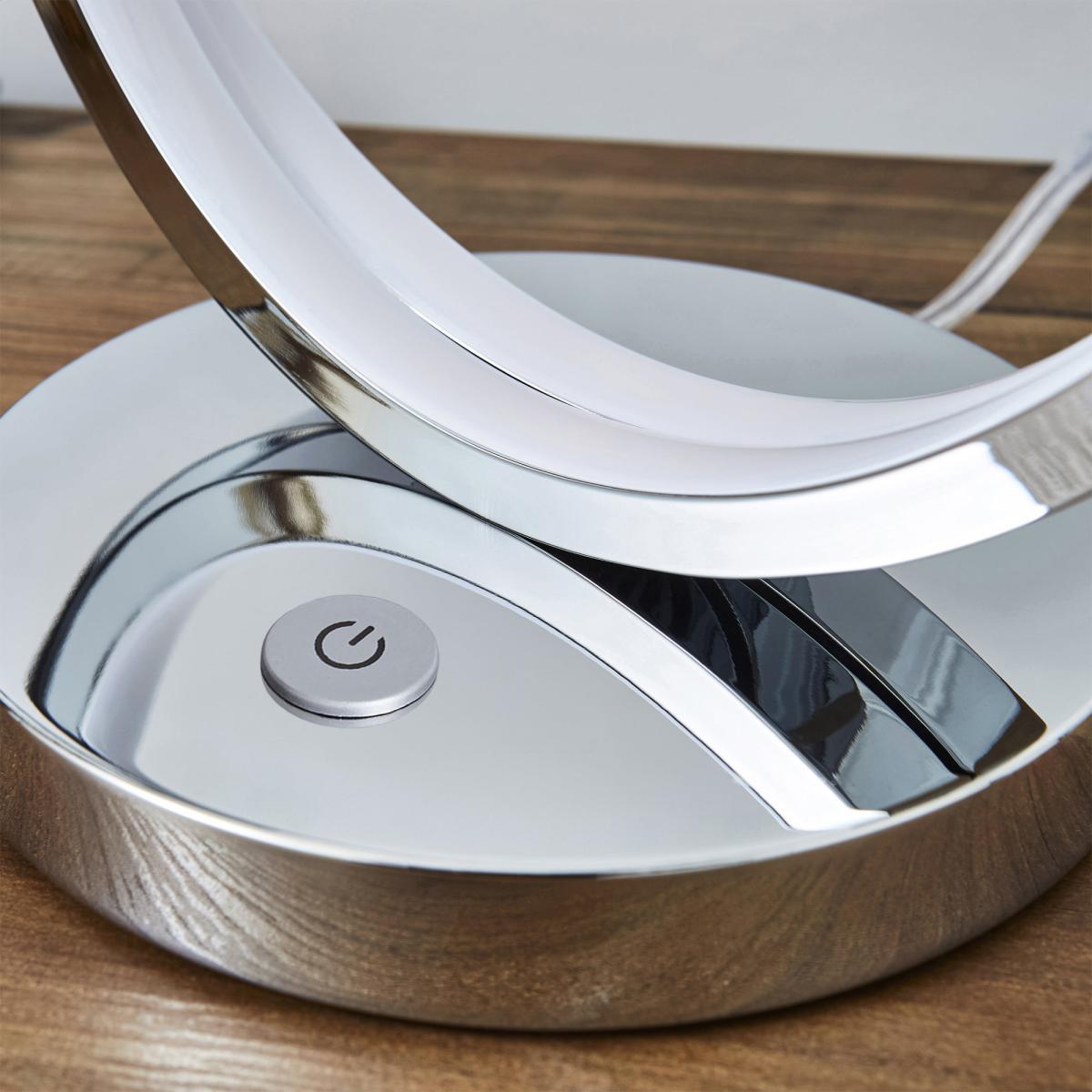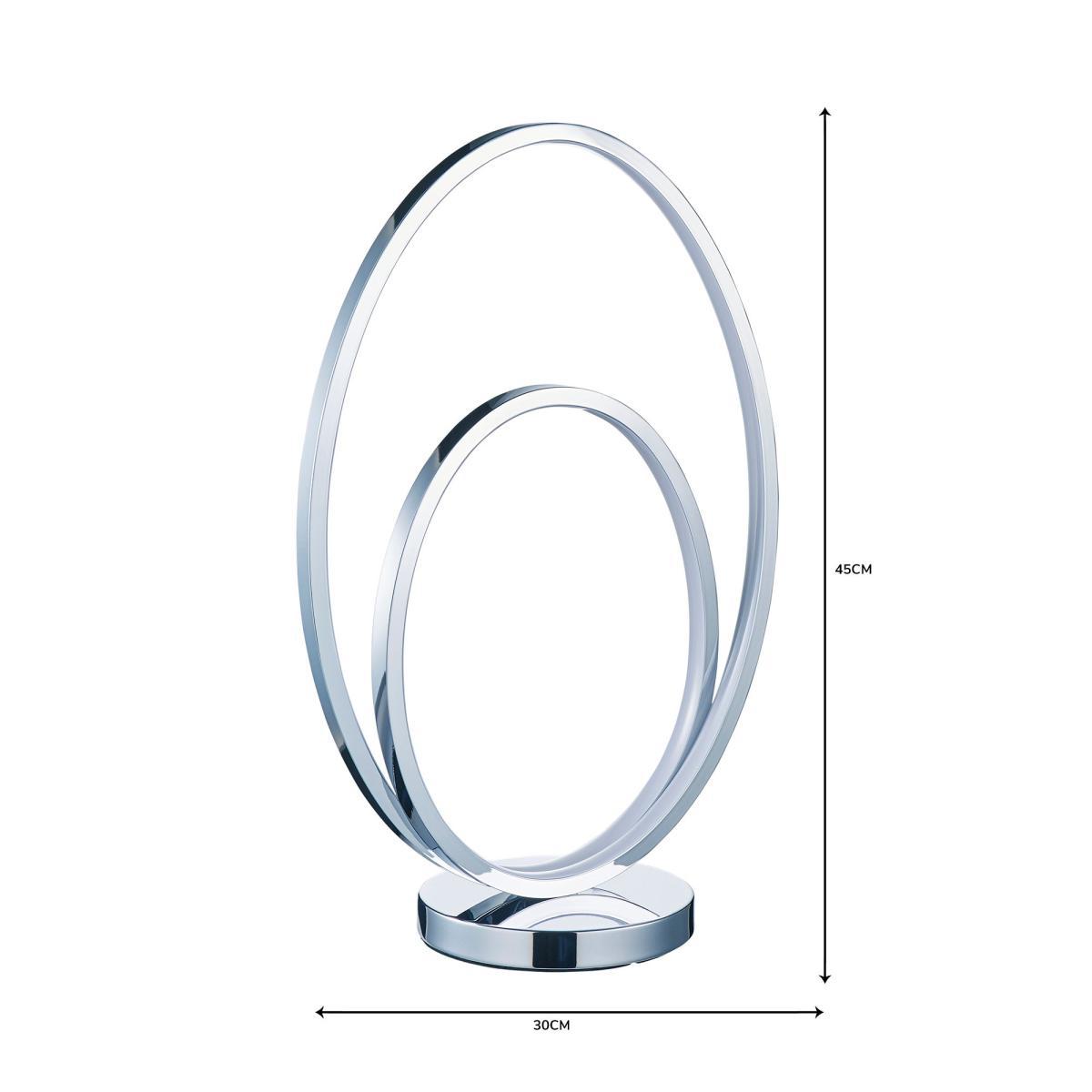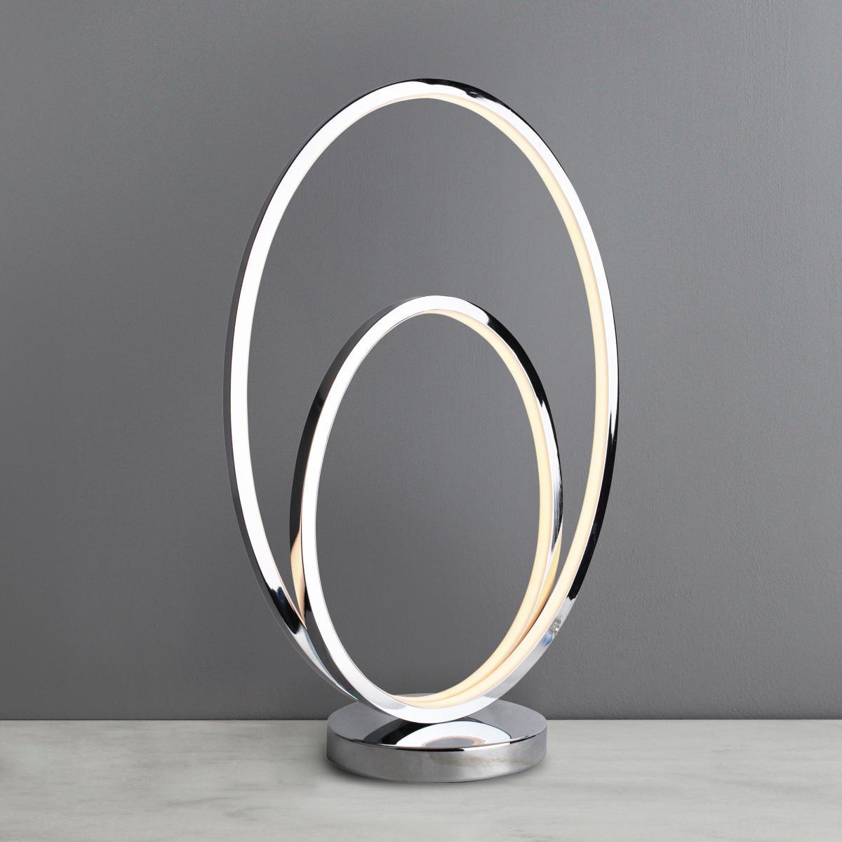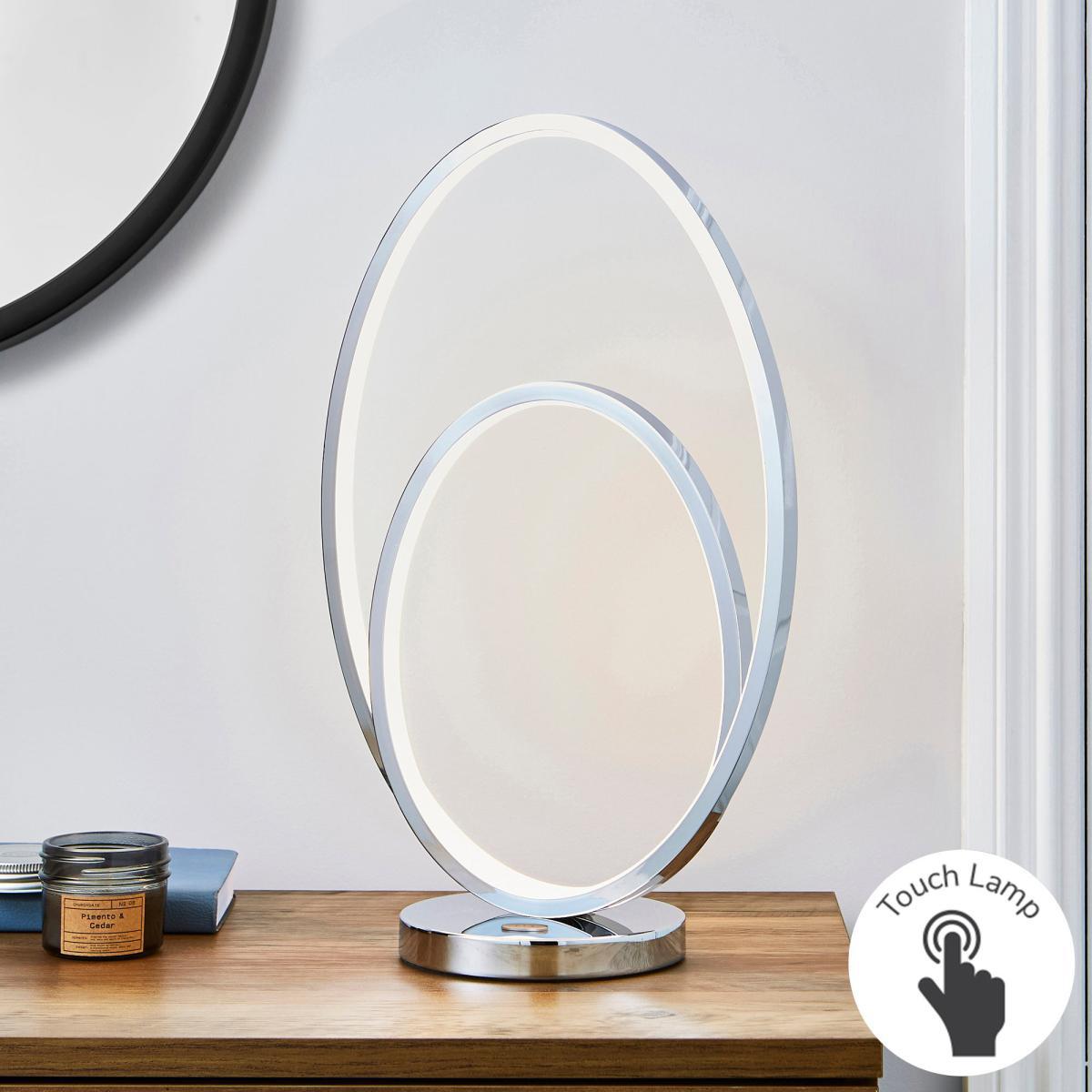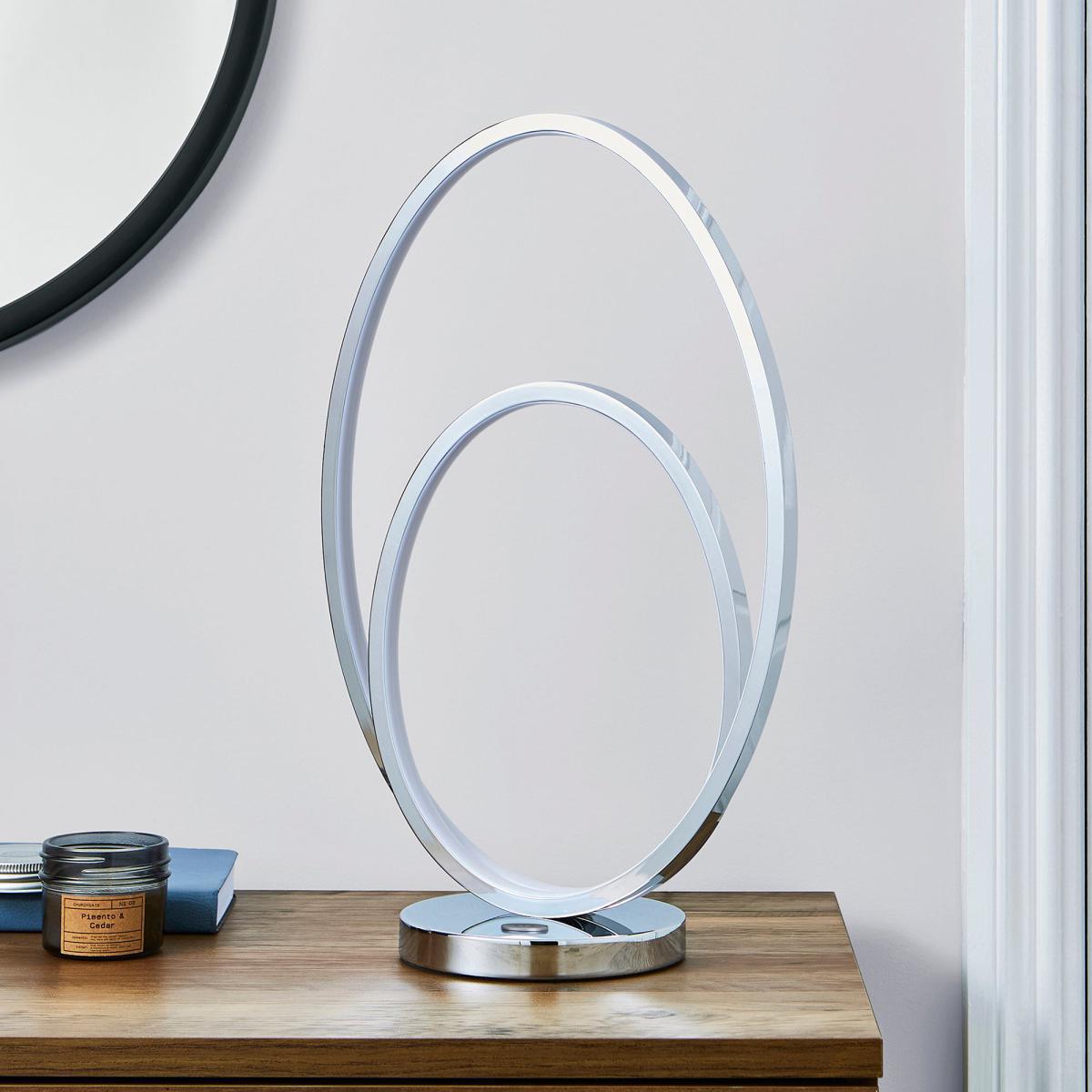 Complete with integrated LED light, this stunning table lamp features a contemporary infinity design and chrome finish. This light has a dimmable touch button with a 3 stage light output. Light your home in a versatile and environmentally friendly way with LED lighting. LEDs are very energy-efficient, using up to 90% less energy than incandescent bulbs and they also have a life expectancy of up to 50 times longer than traditional bulbs. LEDs have the advantage of producing a lot less heat, as well as offering the choice of a warm golden glow or a cooler white light, meaning you can find the best lighting tone to suit your home. The UK’s Waste Electrical and Electronic Equipment (WEEE) regulations will allow members of the public to deposit old electrical and electronic items at recycling sites across the UK free of charge. For more information on WEEE and your nearest centre please click. Here. For more information. For more information on how to replace components in our LED lighting, please click. Here.