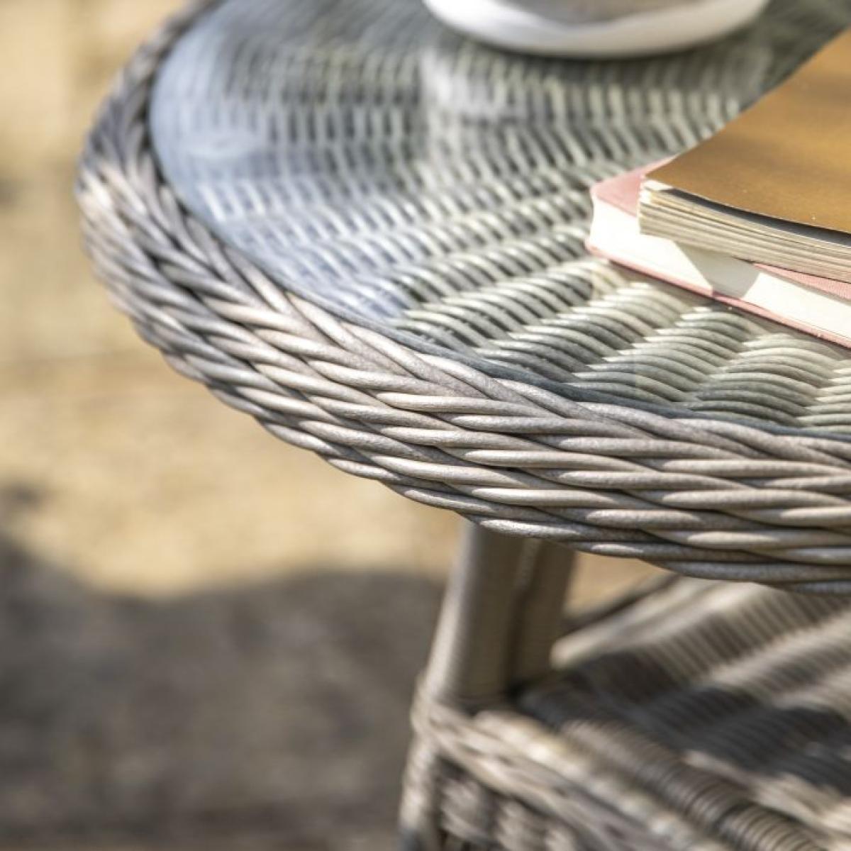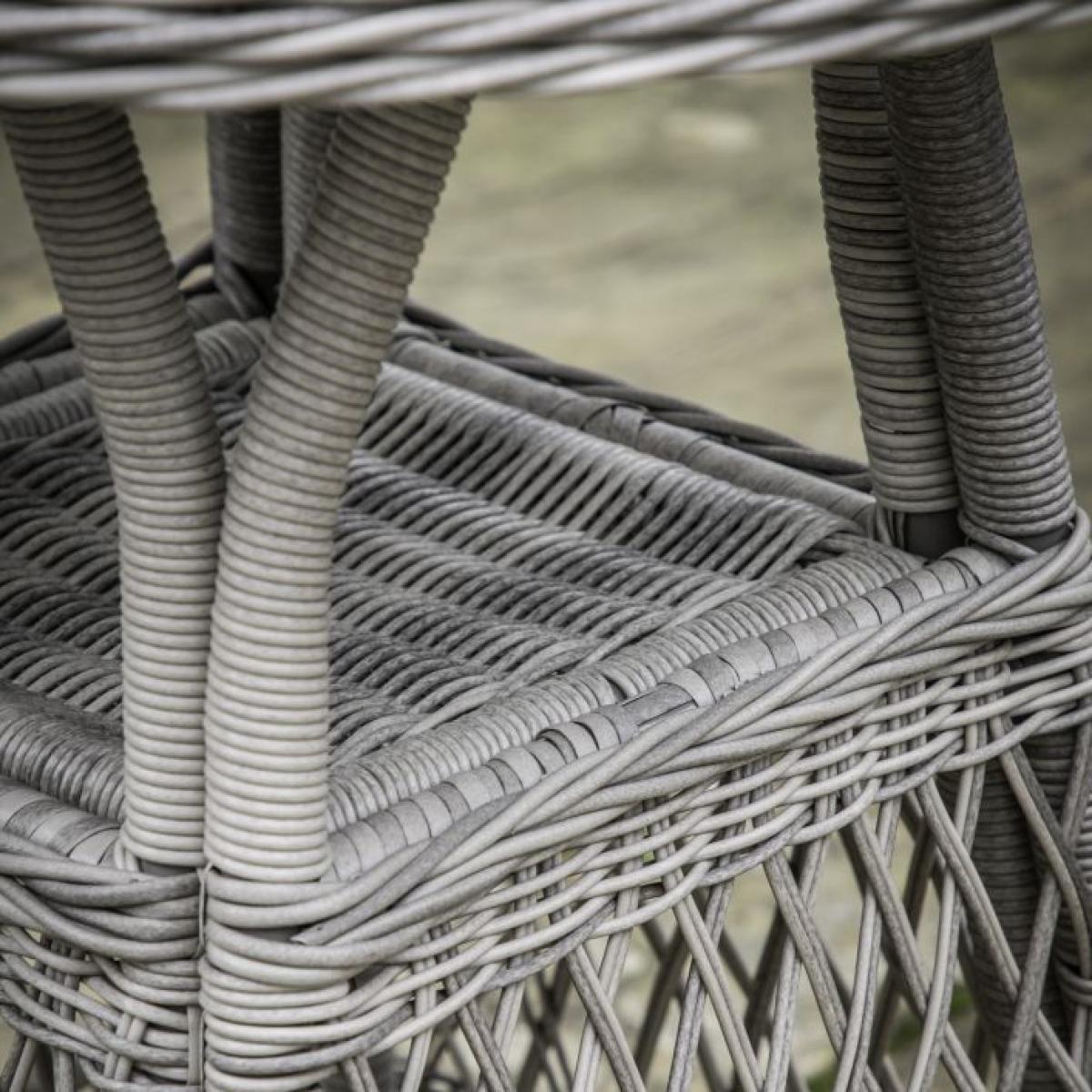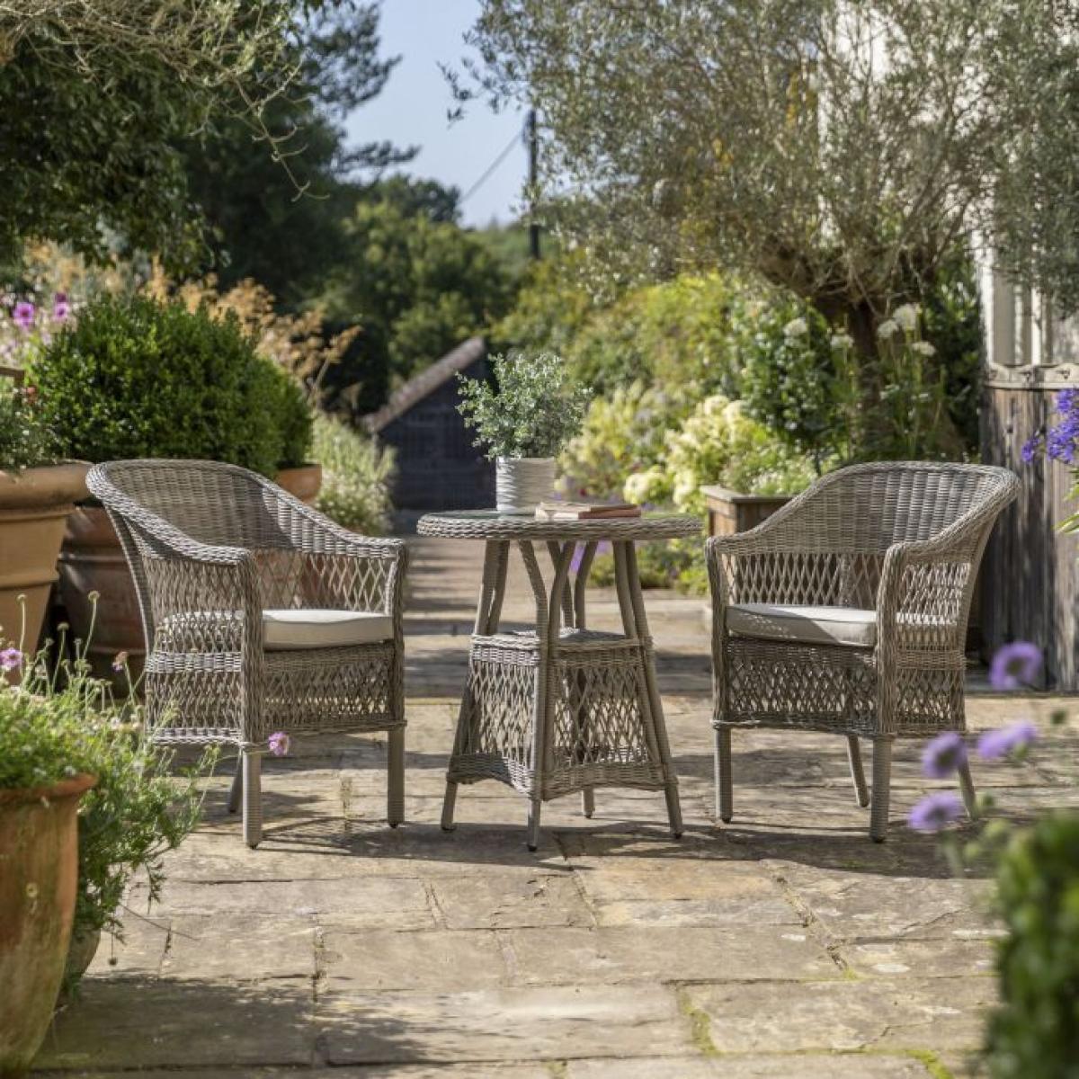 This lovely bistro set is crafted from all-weather 5mm PE rattan with a combination of close weave and open weave patterns to give a stylish design in a lovely stone colour. For comfort, the seats have luxurious showerproof cushions in a soft colour to complement the colour of the rattan. The frames are aluminium and the table top is glass. Coordinating items are available.
