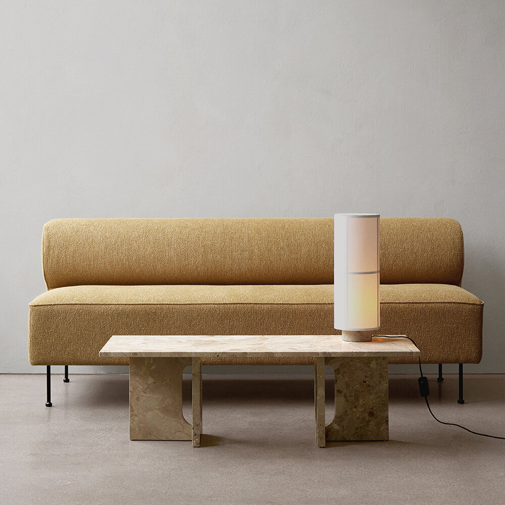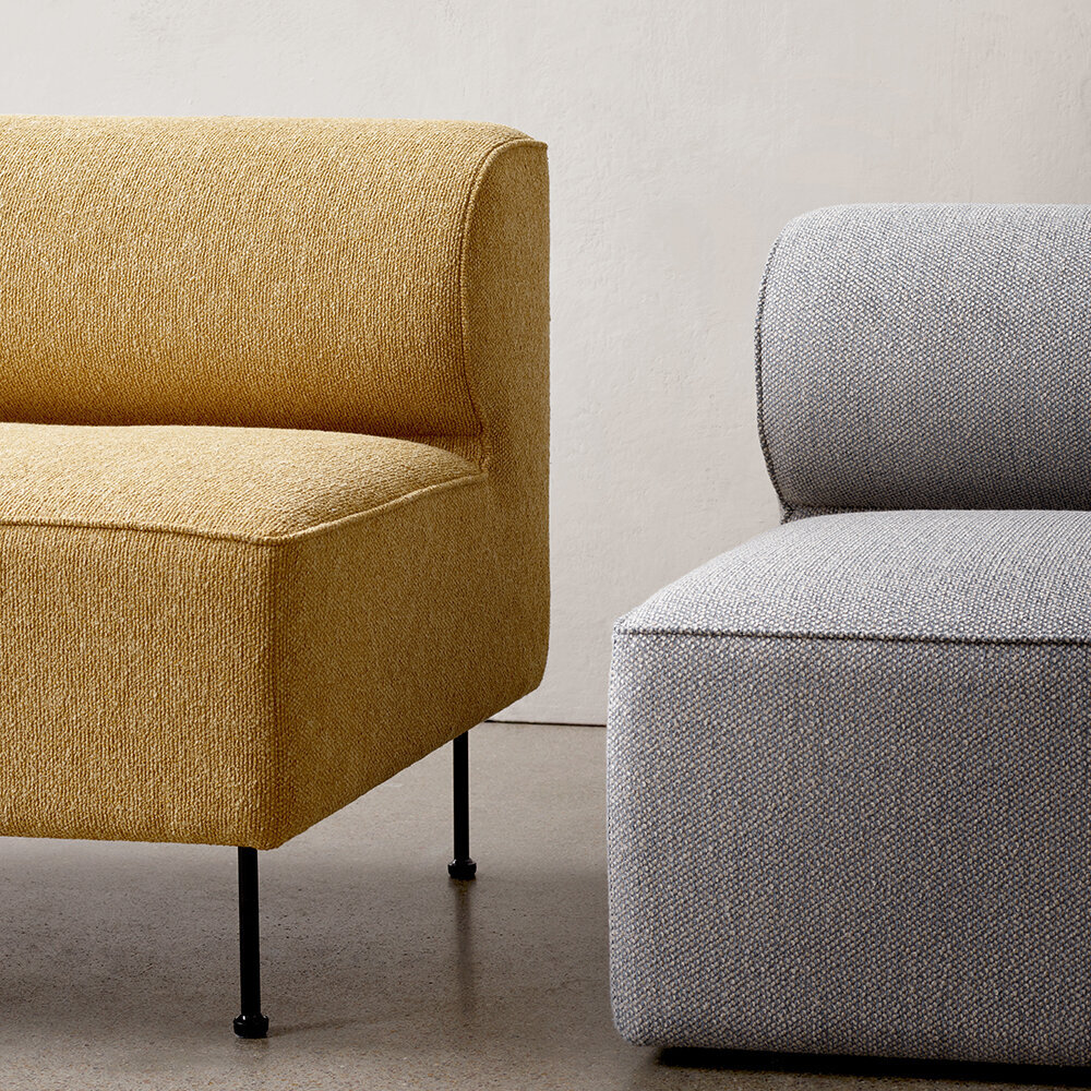 Sit back and enjoy the meal with this dining sofa from MENU. A fusion of sofa and bench, it has clean lines and a minimalist form with slender metal legs. In a mustard yellow colour, this striking piece blends effortlessly into your modern home.