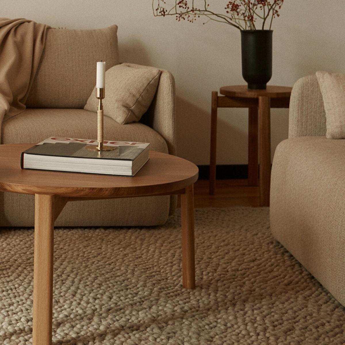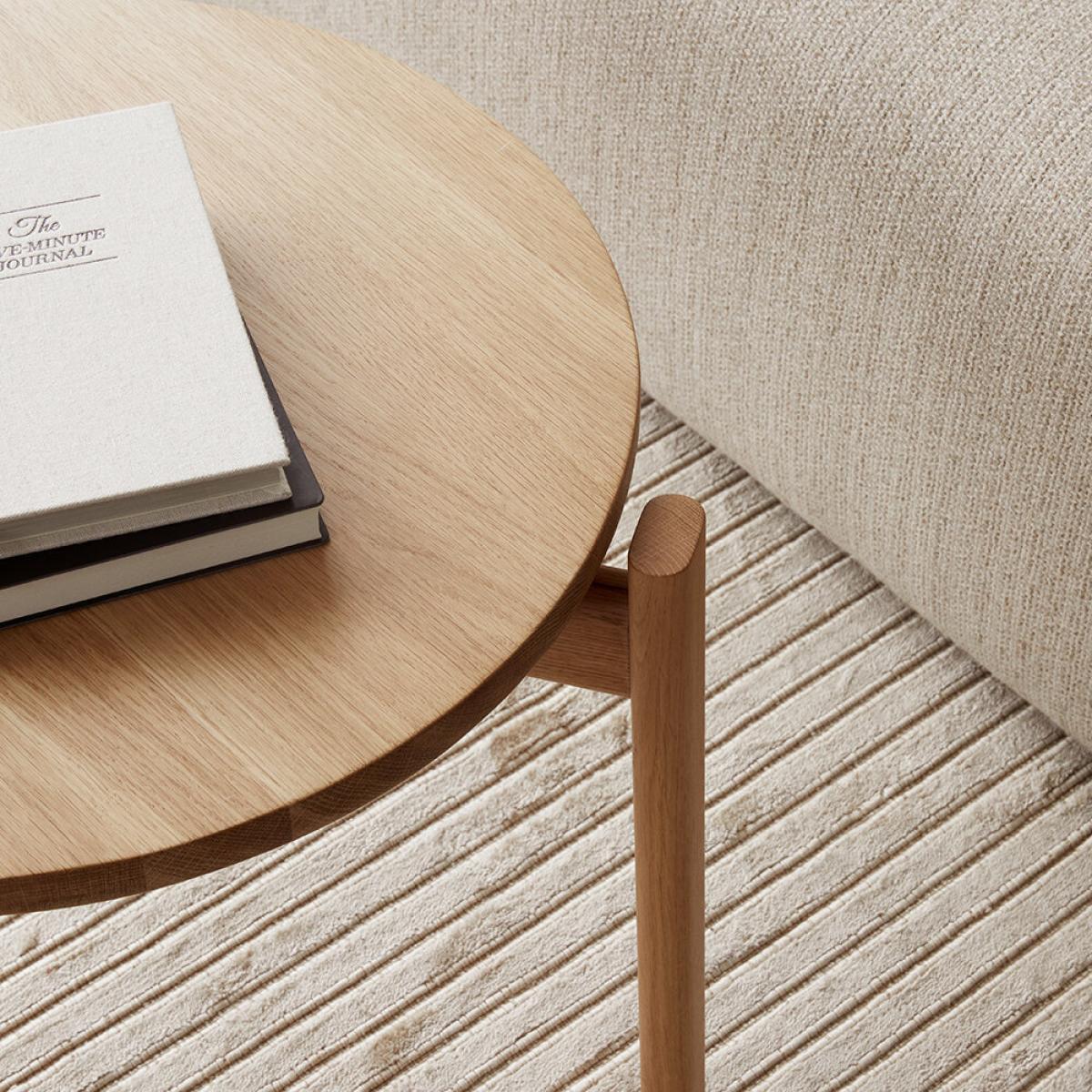 Update your living room with the Passage Lounge Table from Menu. Ideal for displaying your favourite accessories or a place to put your beverages, this simple and stylish design is perfect for all homes. Pair the different sizes together in a nest-like formation for a unique look. Key features: * Material: solid oak * Dimensions: H43xØ50cm * Round shape * Three legs