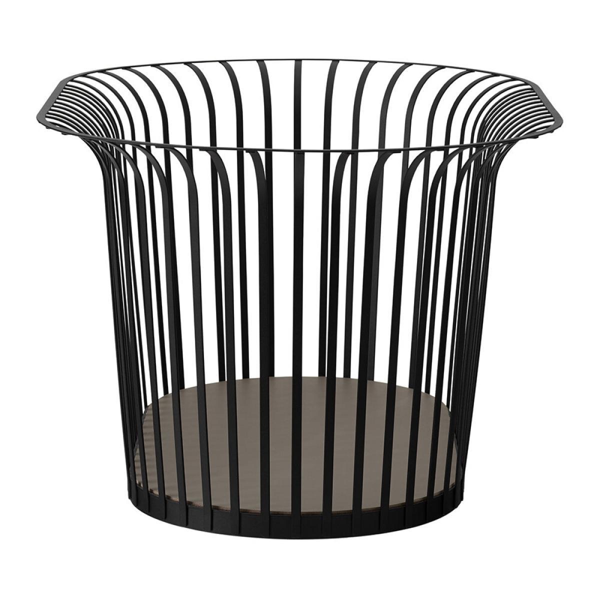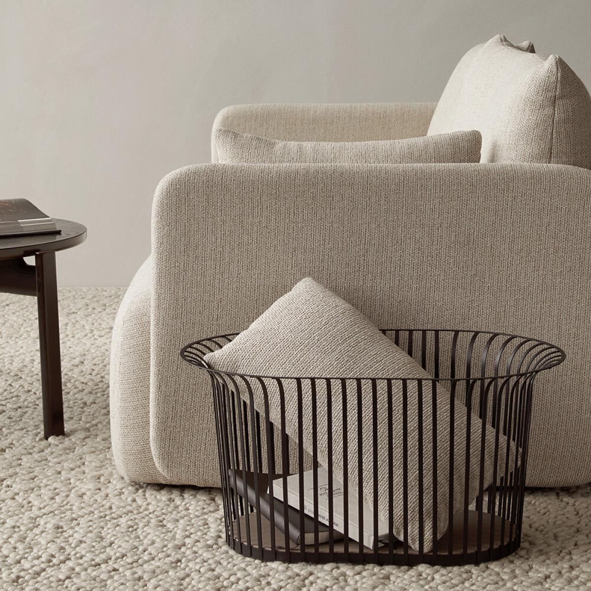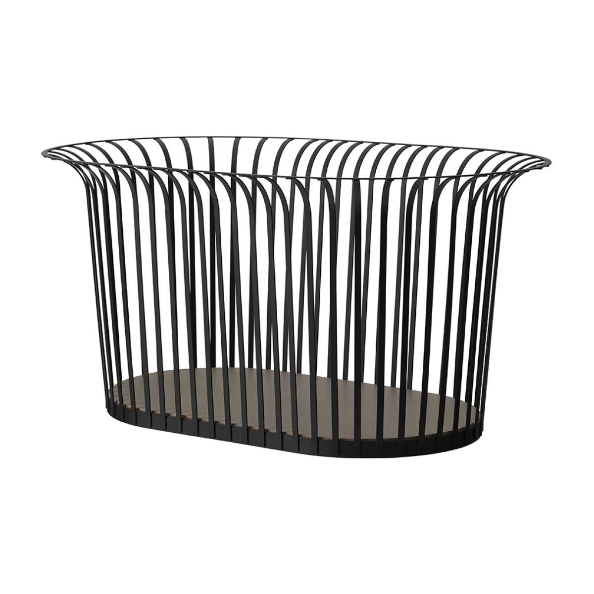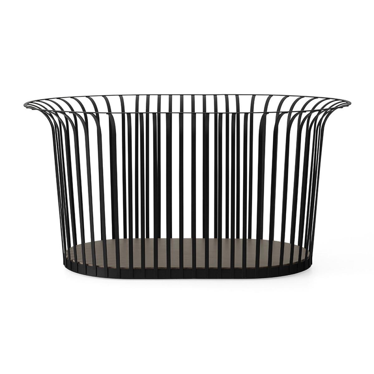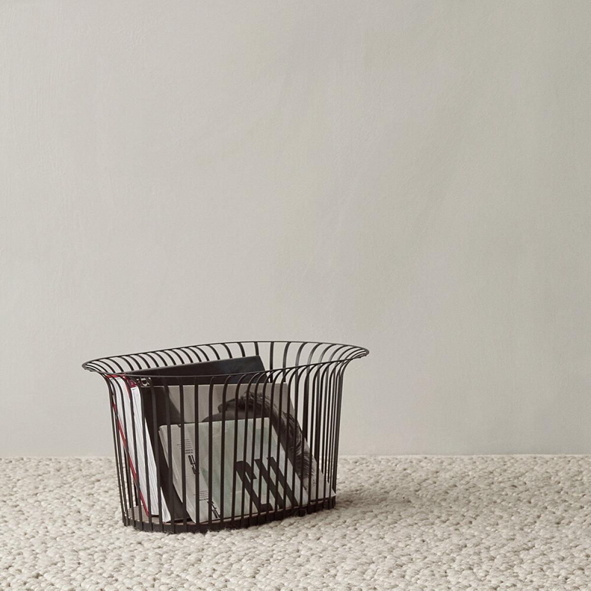 Get your home organised with this Ribbon Basket from Menu. With steel strips, leather cushioning, and silicone feet, this modern yet traditional basket is a beautiful storage solution. A stylish and practical design that can store magazines, home textiles, accessories and more. Available in two colours. Key features: * Material: powder-coated steel, leather, silicone * Dimensions: H43xW61xD30cm * Black colour * Wired basket