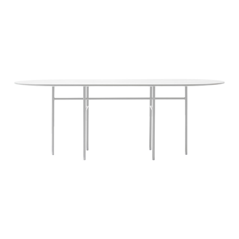 This snaregade oval dining table is a sleek and contemporary choice that works well in both minimalist and modern interiors. Its light grey finish offers a neutral palette that complements a variety of colour schemes and textures, making it an versatile addition to your dining space. I love how its slim, elegant legs add a sense of openness, perfect for creating an airy feel in smaller rooms. Practical styling tips include pairing it with streamlined chairs or mixing different textures like velvet or leather for added visual interest. To keep the look cohesive, consider layering with soft textiles and subtle accessories - this table’s understated design allows for flexible styling options while serving as a functional centrepiece.