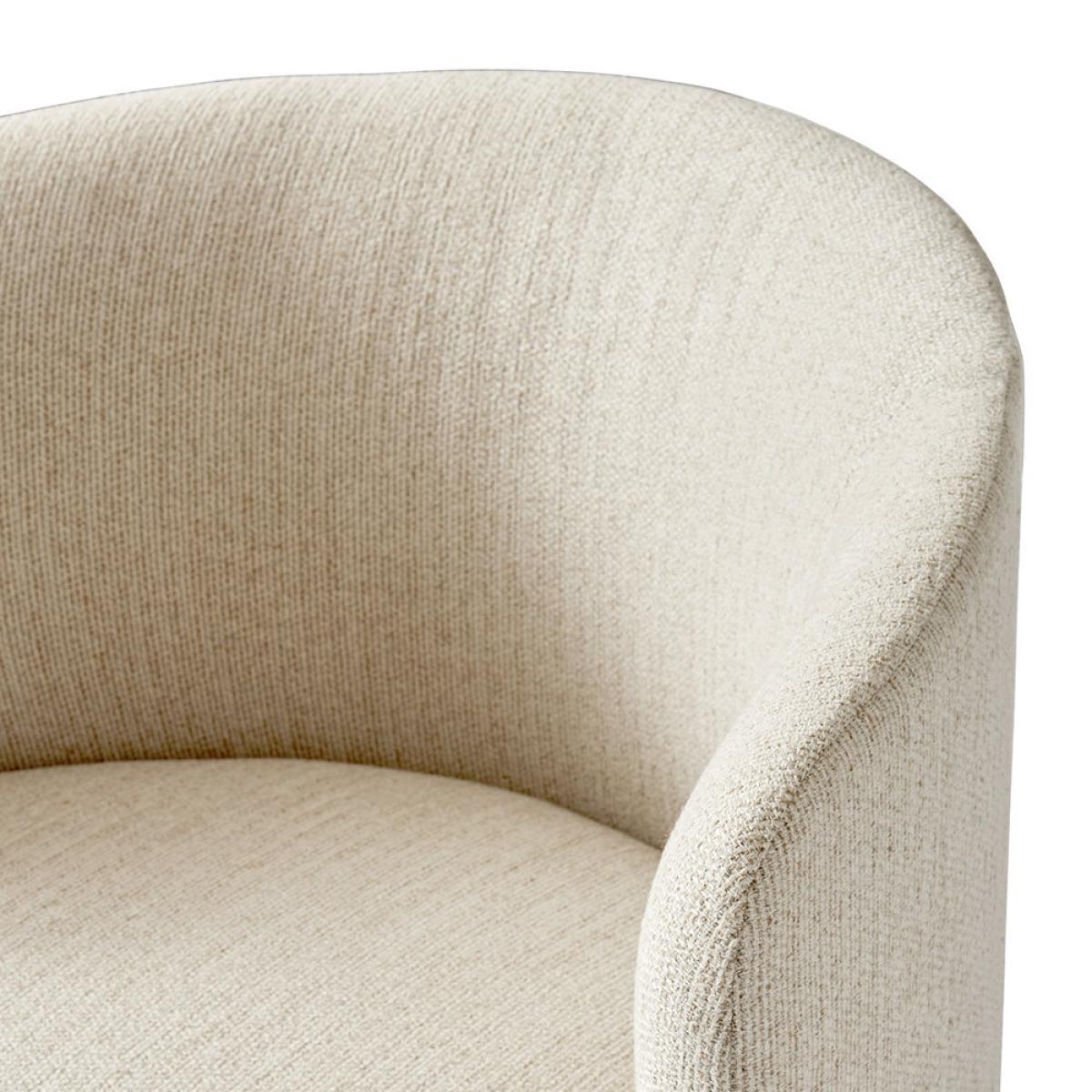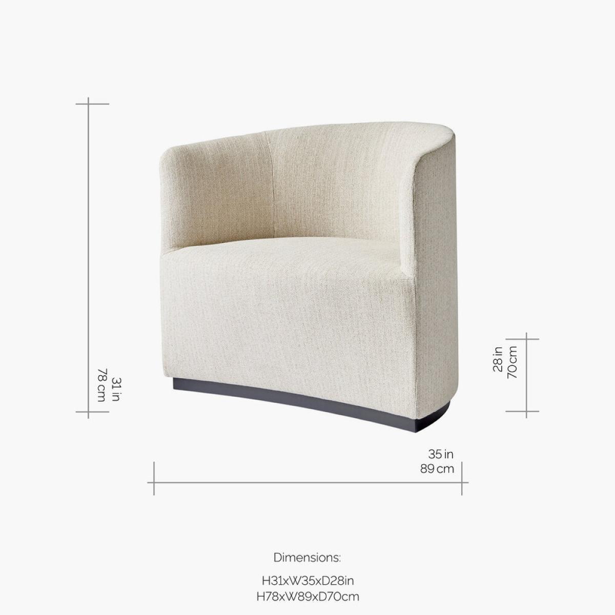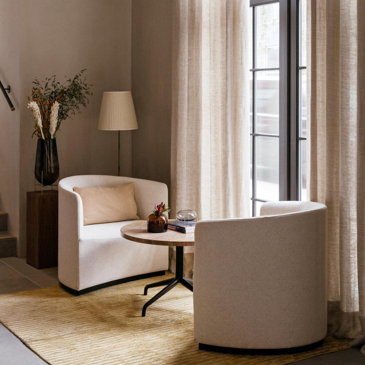 I really like this lounge chair for its clean, sculptural silhouette that fits well into modern or contemporary interiors. Its soft, neutral fabric makes it versatile, ideal for creating a calming corner in a living room, bedroom, or even a sophisticated waiting area. I’d suggest pairing it with textured cushions or a statement side table to add visual interest. Practical styling tips include placing it next to a small side table with a reading lamp or nearby within an open-plan space to create a cozy, inviting spot. Its compact size makes it perfect for smaller rooms or for use as a statement accent piece in larger, curated schemes.