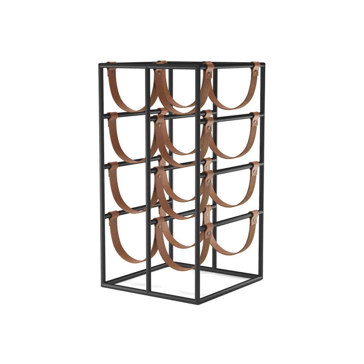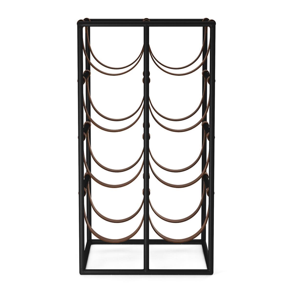 House your bottles in style with this Umanoff rack from MENU. Made from black powder-coated steel, it features room for eight bottles on leather straps. Perfect to keep on display to bring a touch of industrial style to any room.