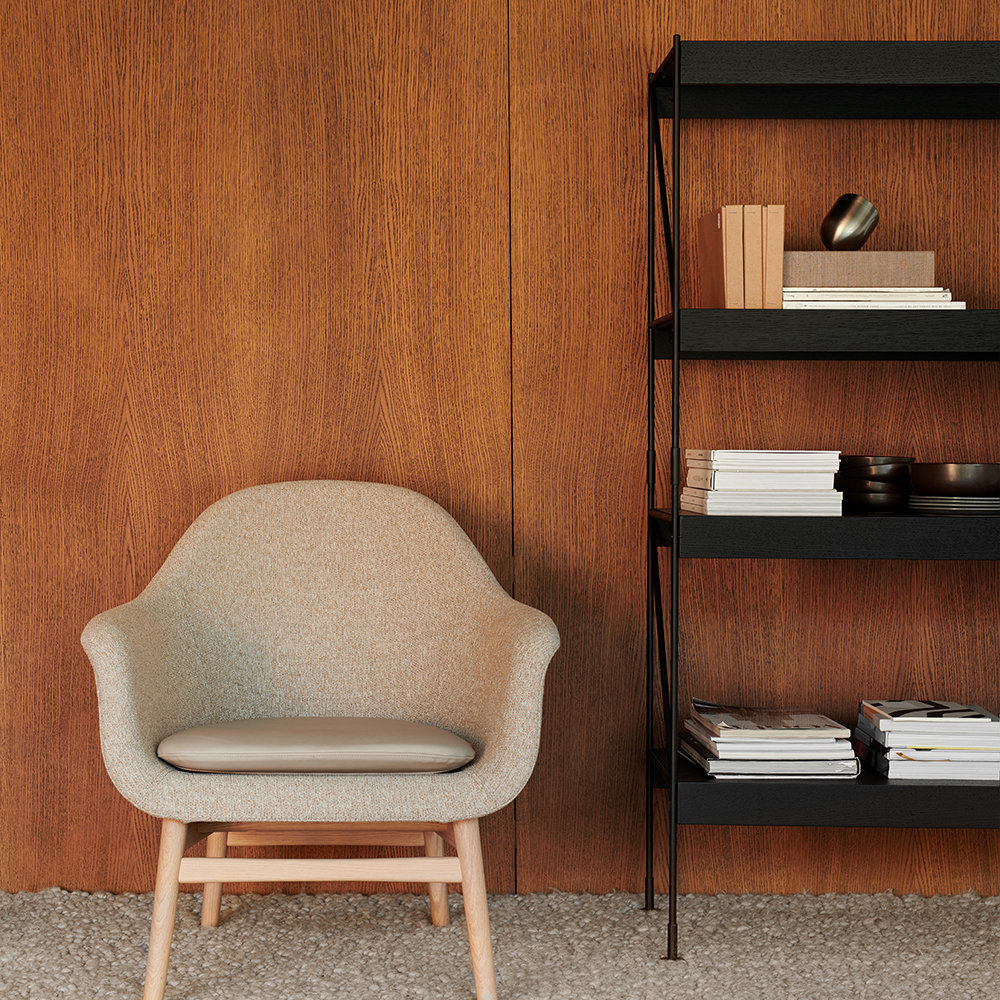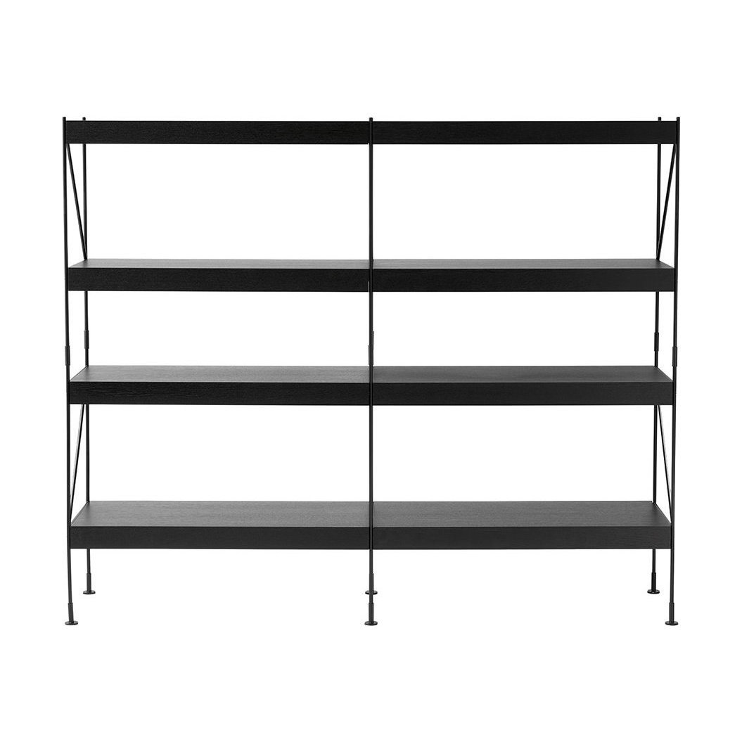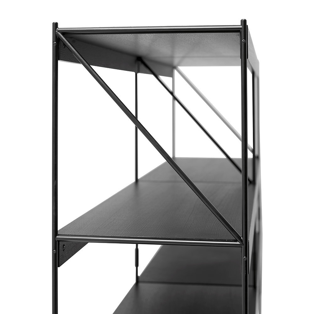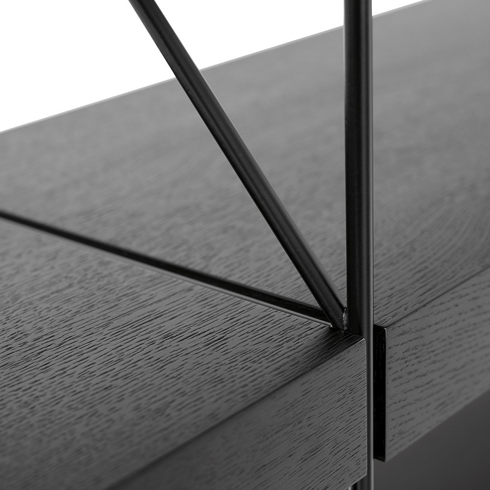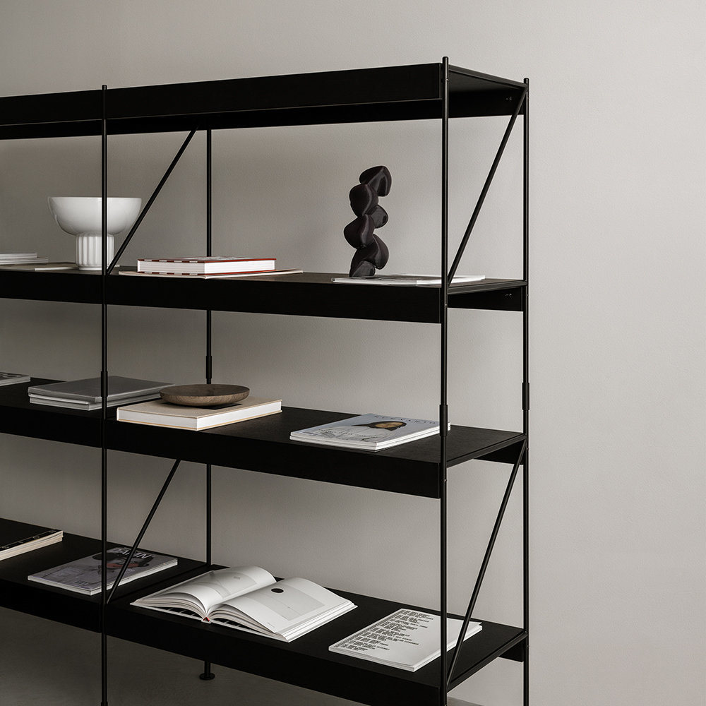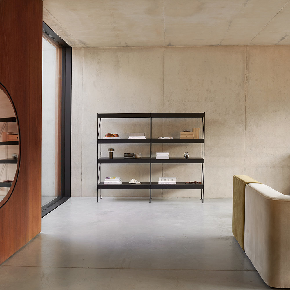 ZET is a smart shelving unit with a minimalist appearance. Made up of only two compartments, the u-shaped shelves and metal frame, you are able to build several different formations to suit your space. Featuring a steel frame with oak veneered MDF shelves, the veneer finish is stained with a matt-lacquer top coat for a chic finish. With an integrated stabilising system, it’s the perfect place for displaying trinkets, treasures and everyday essentials.