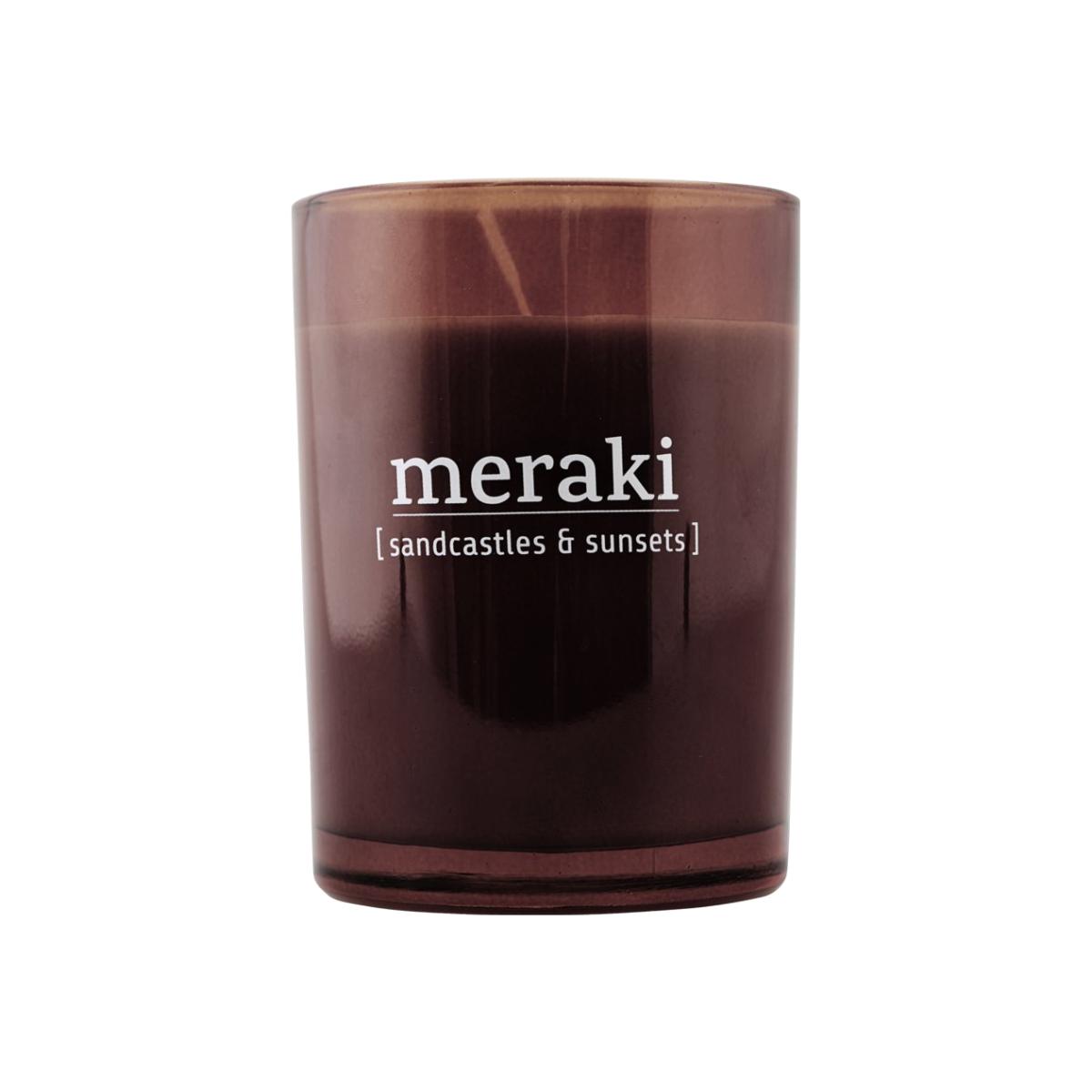 Meraki scented candle brown glass 35 hours sandcastles & sunsets