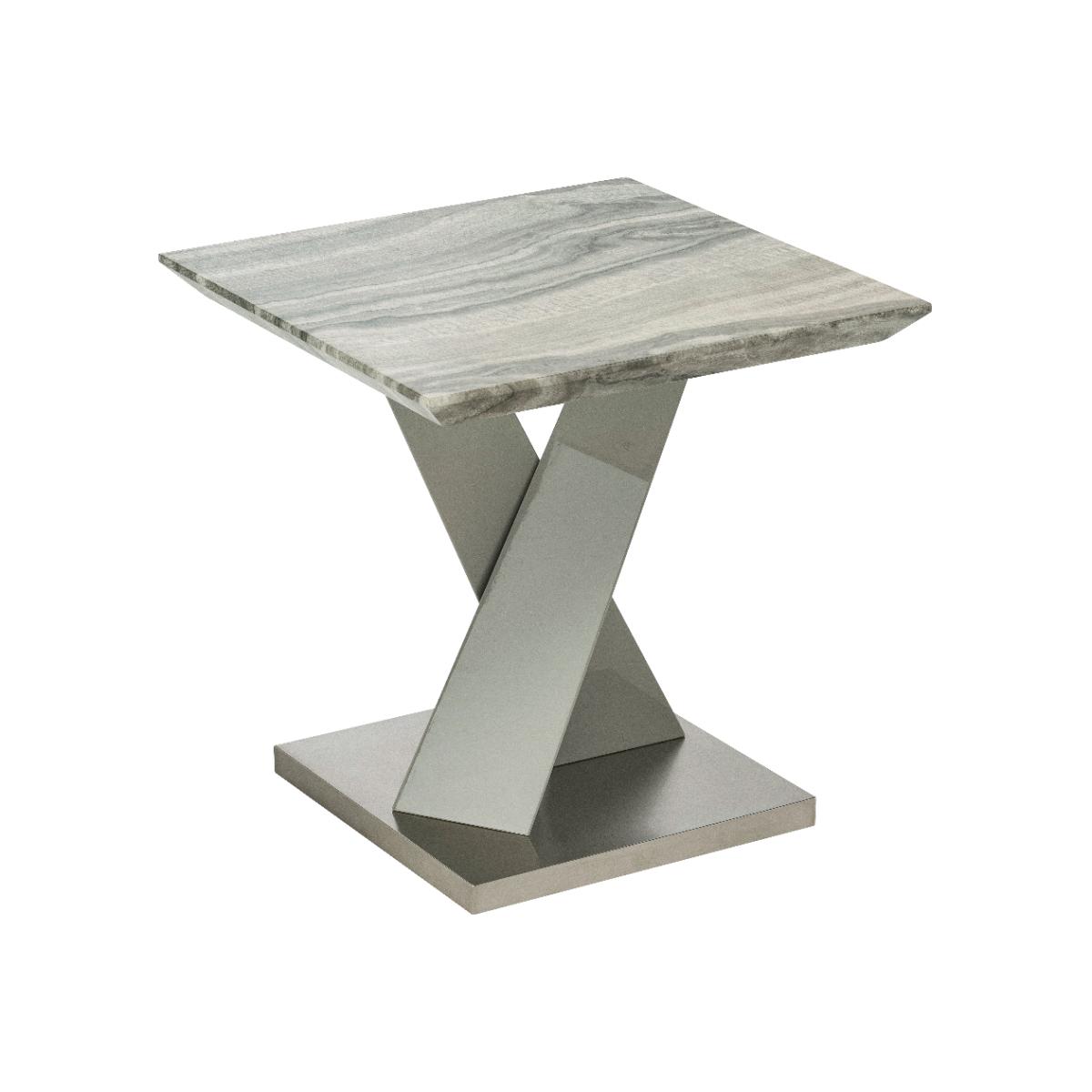 Meran Grey 55cm Lamp Table. The Merano Grey Lamp Table is a beautifully crafted table with a stunning high gloss finish. A combination of white and grey create a rich granite effect. Complimented with a brushed stainless steel base finishes the look. Perfect for modern and traditional homes. Check out the matching Merano 6 seater dining set and stylish Merano console table to complete your home.
