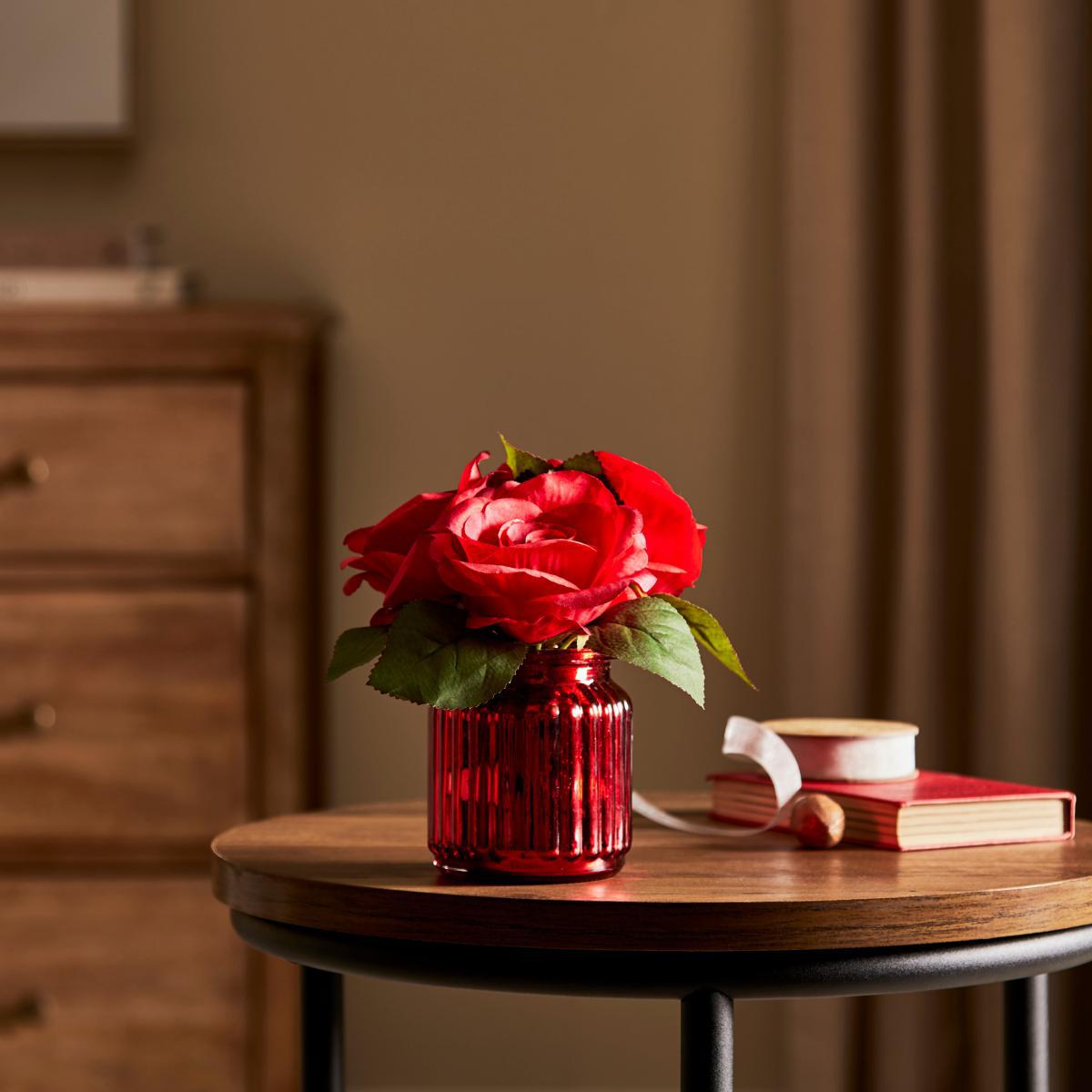 I love the Mercury Pot with Red Rose Red for its vibrant colour and realistic appearance, making it a great choice for adding a pop of colour without the fuss of maintenance. It works well in cosy, traditional interiors as a centrepiece on side tables or mantels, and can also brighten up contemporary spaces when clustered with other bold accents. Practical styling tips include pairing it with neutral or warm tones to highlight the flower's rich red, and placing it in areas where natural light can enhance its colour. Its compact size also makes it versatile for desks, shelves, or bedside tables, offering a lively touch wherever it’s showcased.