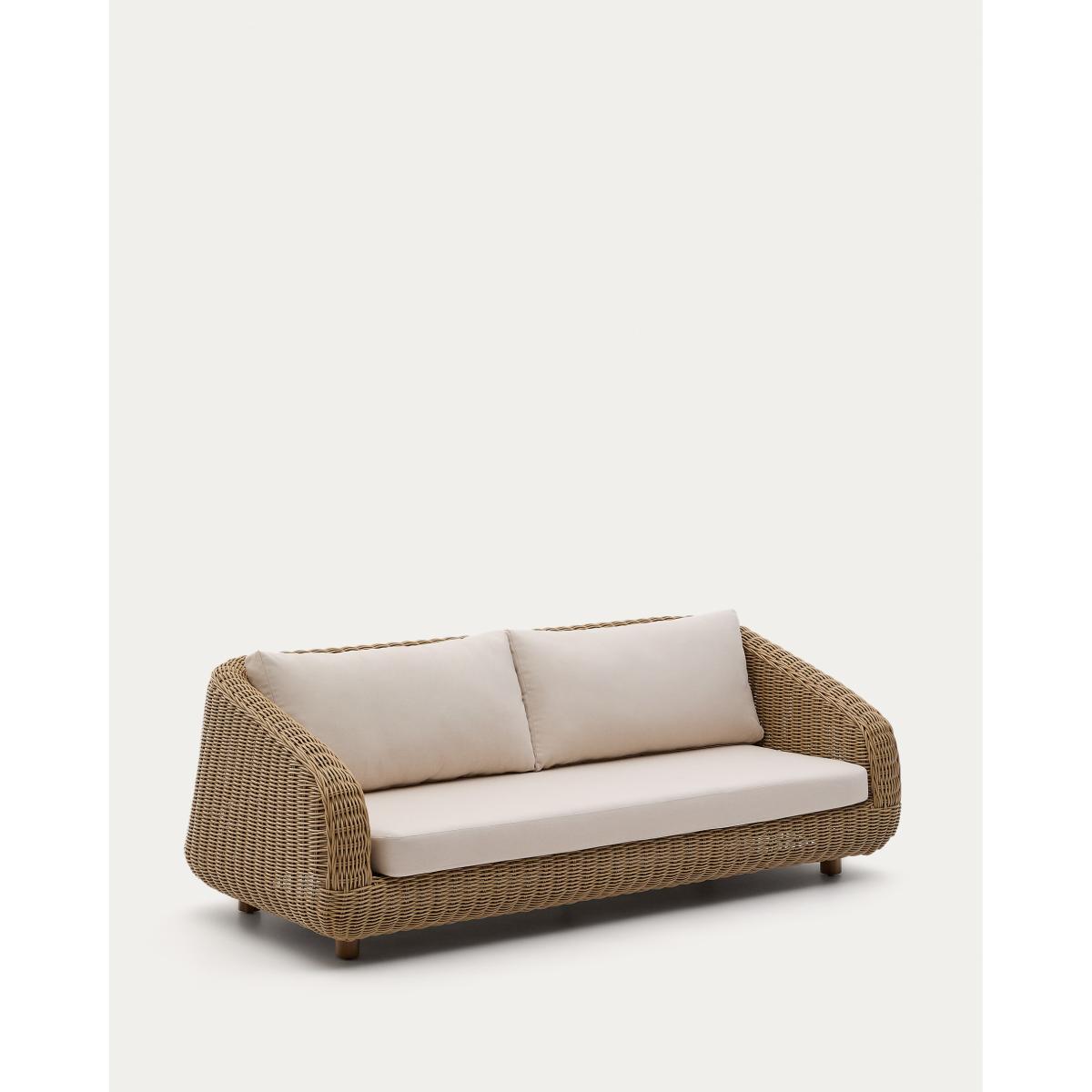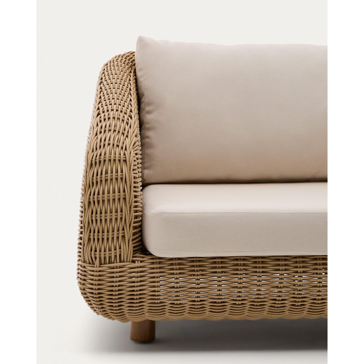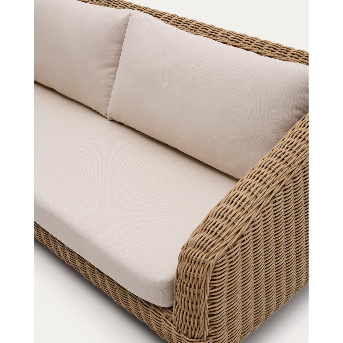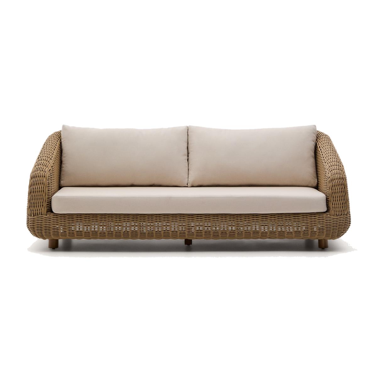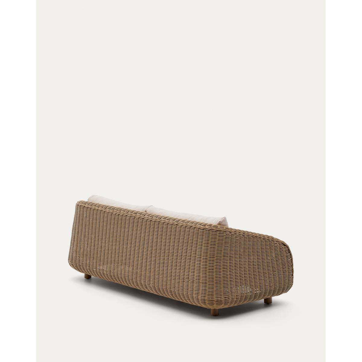 A collection that combines the rustic nature and practicality of synthetic rattan with an aesthetic featuring smooth, rounded lines. It is weather-resistant, allowing it to retain its beauty and structure both indoors and outdoors, as well as being easy to clean. The cushions have removable covers and are water-repellent, offering additional convenience. We recommend storing them away on rainy days or covering the sofa with the Iria protective cover to ensure its long-term preservation.