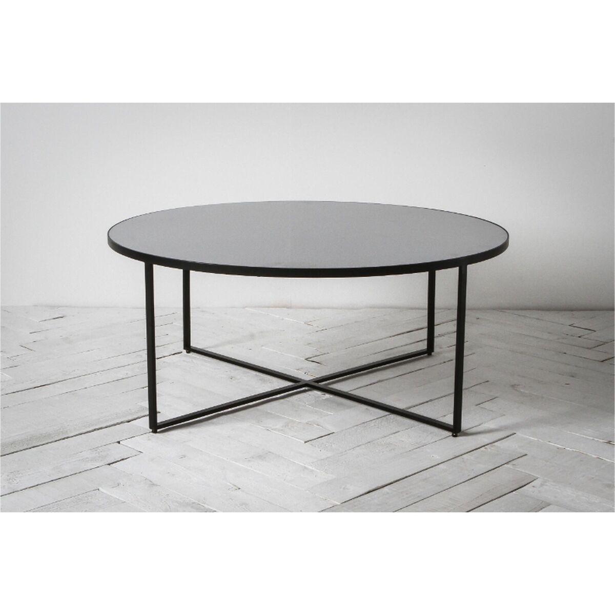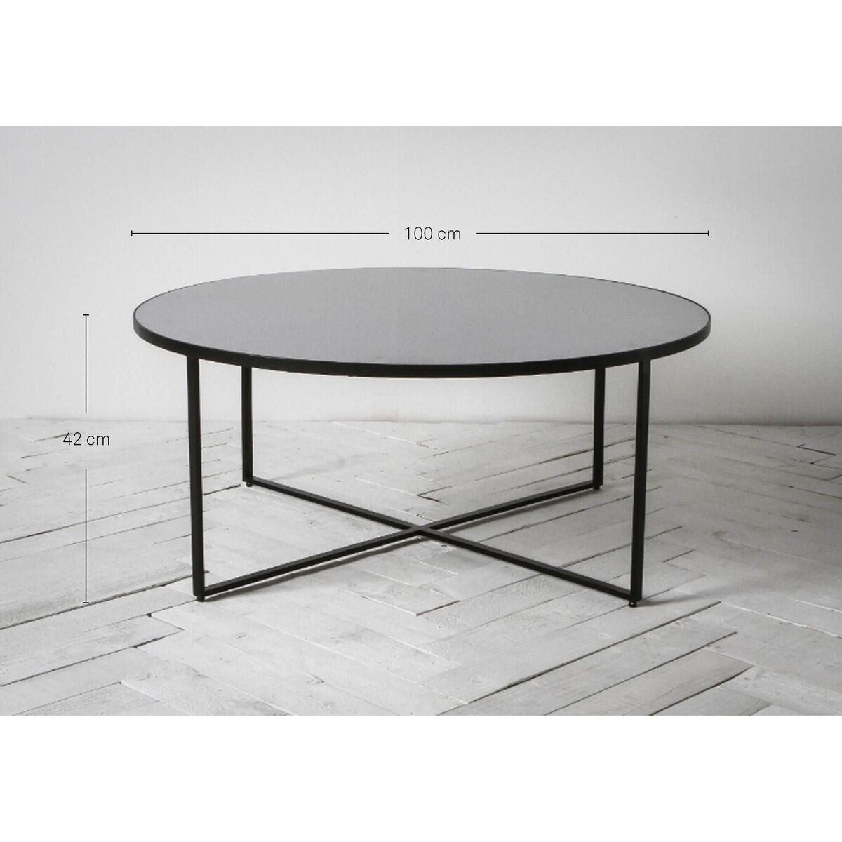 I often reach for this coffee table for its slim metal cross-base and generous round top - it feels both light and substantial. It suits modern, Scandi or industrial schemes equally well, slipping under a low-slung sofa without overwhelming the space. For styling, keep objects low and layered: a sculptural vase on a small tray, a couple of art or design books and perhaps a candle or ceramic bowl. Tuck a woven basket or stack of magazines underneath to add texture and keep surfaces clear. The result is a clean, lived-in look that still feels pulled together.
