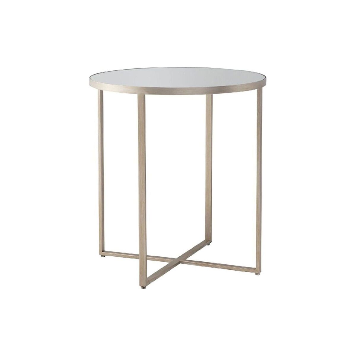 Introducing the Merial side table, a sophisticated design with a smart look. The Merial blends industrial-inspired textures and a contemporary shape with ease and featuring a gorgeous, smoked mirror glass top and metal criss-cross base with a subtle brushed nickel finish. Place the Merial next to a window in a contemporary living room to let it spread its beautiful reflections, making the room look visually larger and perfectly styled up.
