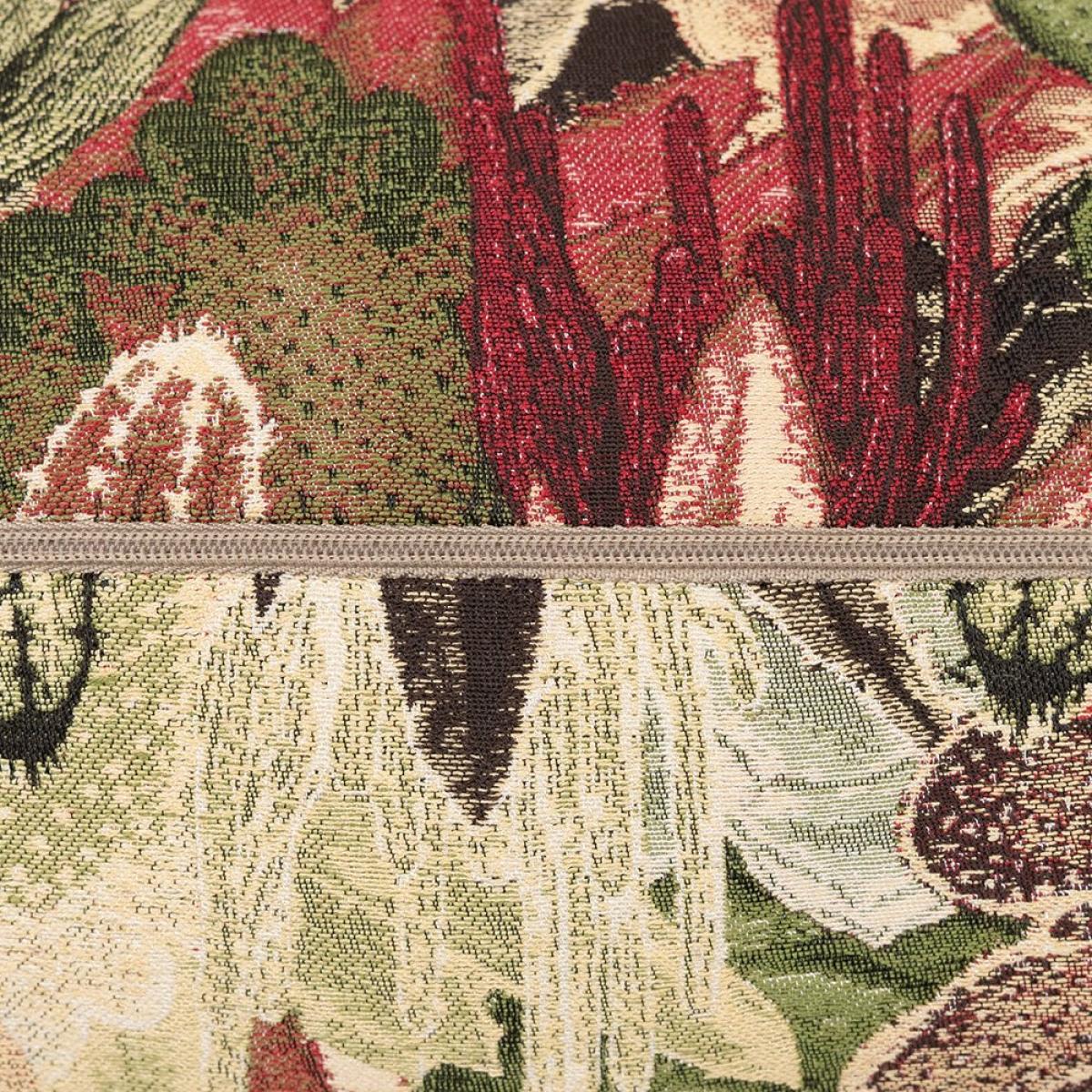 The Merida Green Cushion radiates a calming influence. While the design captures the structural allure of leaves in the wild, the palette showcases a creative twist on nature’s classic greens. Featuring a jacquard textured construction on the front and back, this cushion integrates perfectly within the eclectic space.