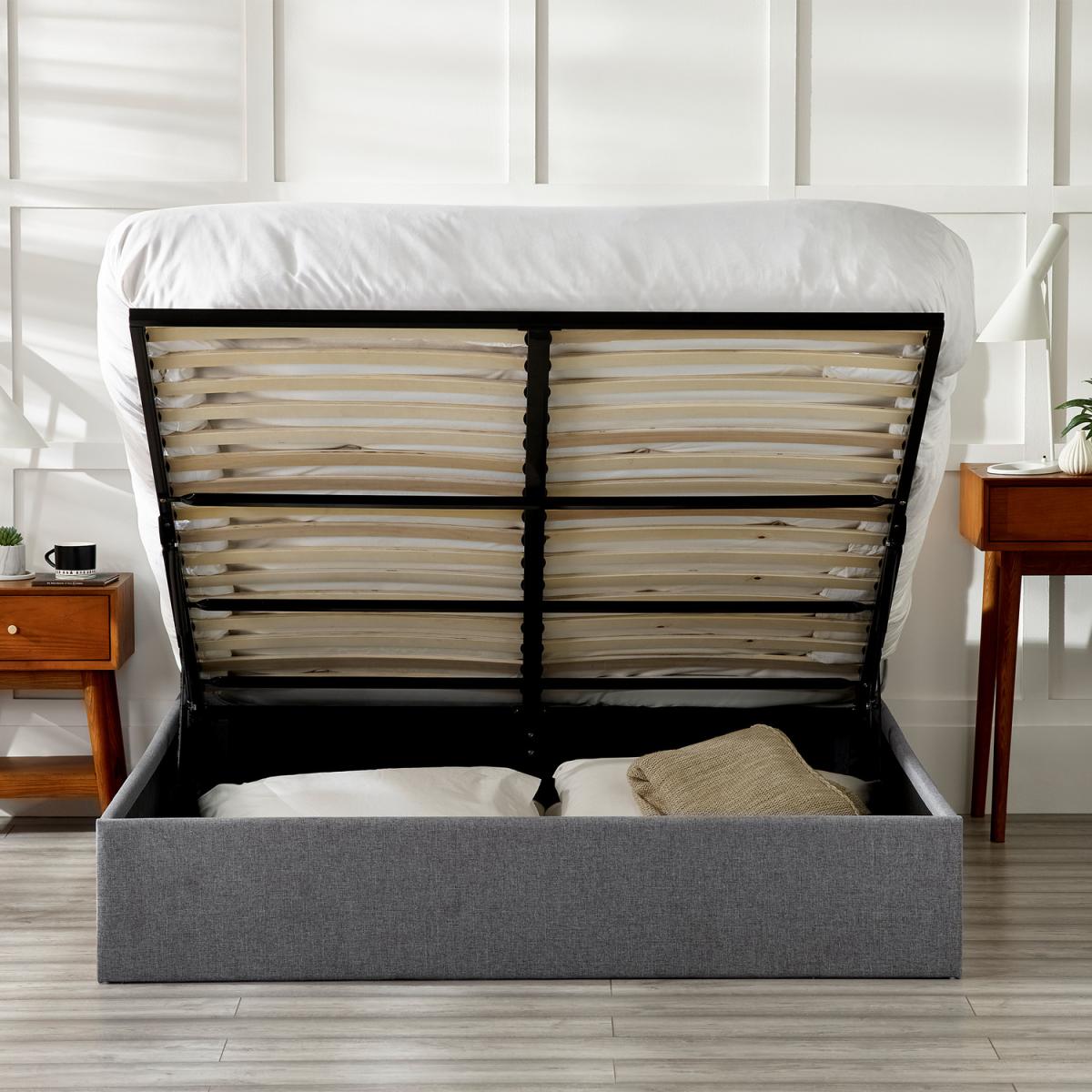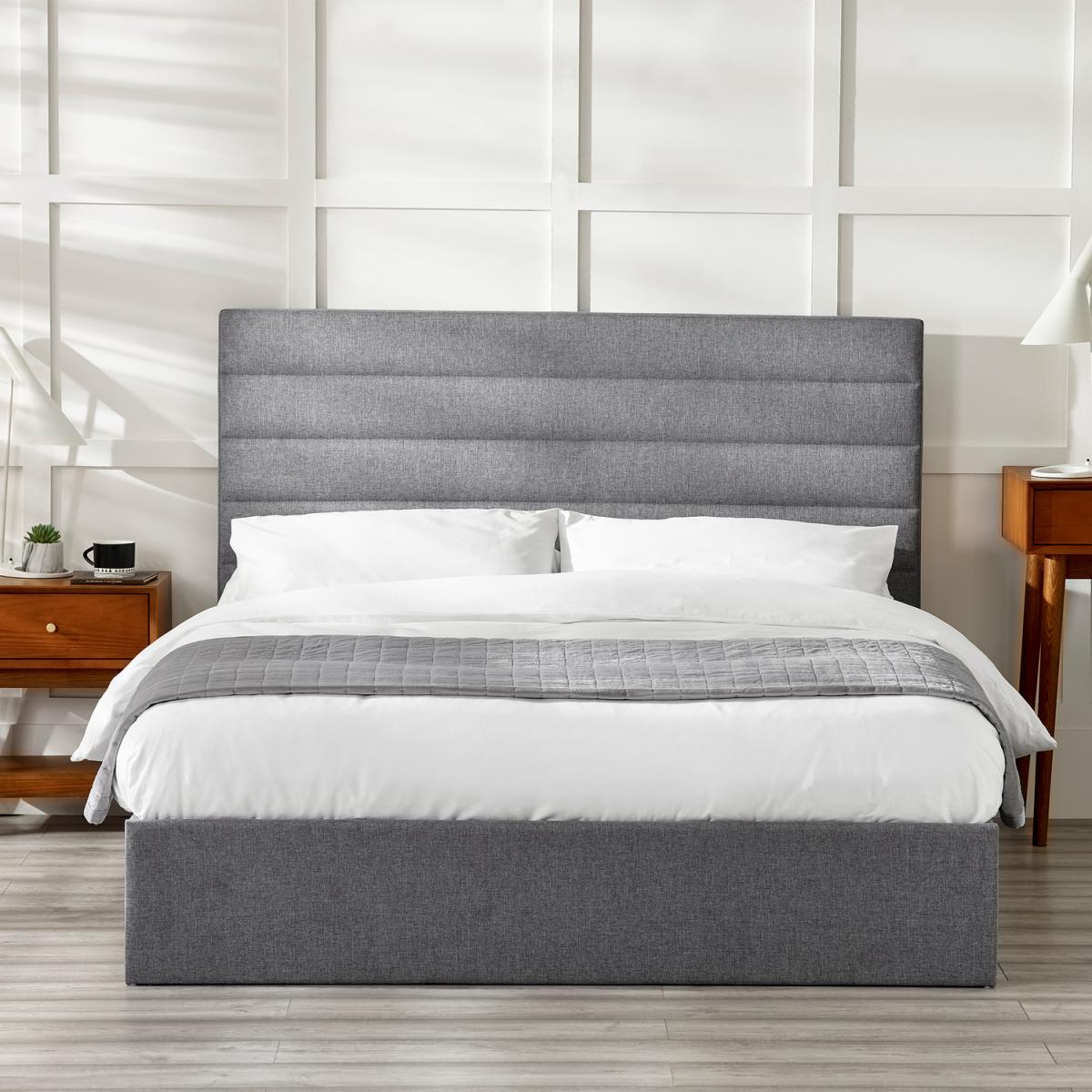 The Merida bed has a horizontal tufted headboard finished in an exquisite grey linen which is likely to transform any bedroom space. The ottoman storage space and timeless design is perfect for any decorative space, and made from solid materials, making it a durable yet beautiful addition to your home.