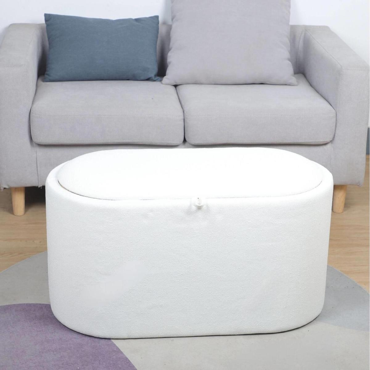 I love this footstool for its versatility and clean, modern look. The white finish makes it easy to integrate into various interiors, from Scandi-inspired schemes to contemporary or coastal styles. Its practical reversible tray lid offers a convenient surface for drinks or snacks, while doubling as a stylish storage solution when turned over. This piece works well in living rooms with neutral palettes but can also serve as a statement piece in more colourful settings. For styling tips, pair it with textured cushions and a cosy throw on the sofa, and consider positioning it near the seating for an effortless, functional touch. Its adaptable design means it can be both a focal point and a practical addition for everyday living.