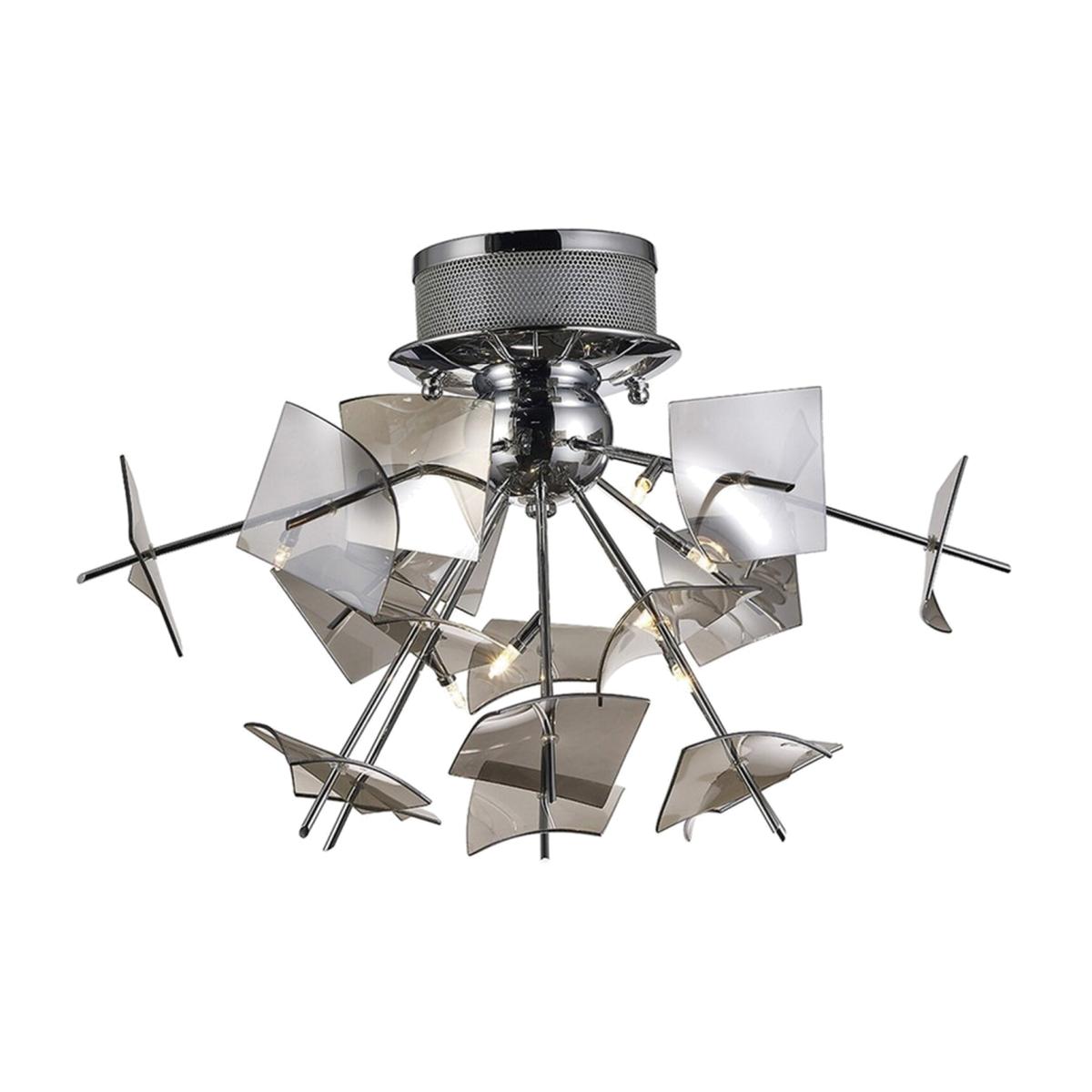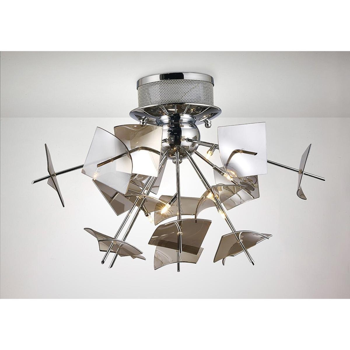 This is a ceiling light like no other. Using a complementary combination of chrome with smoked glass the result is impressive futuristic and ultra modern. The arms are finished with square pieces of smoked glass, that are dynamic and decorative, as well as offering some shade for the G4 lamps.
