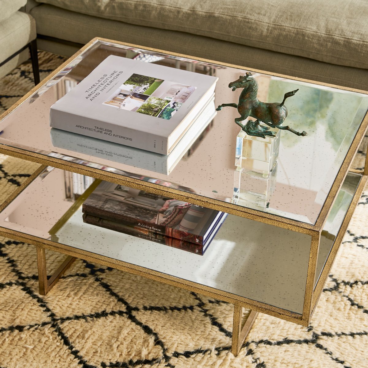 The Merle coffee table is a stylish choice that combines vintage charm with a contemporary edge, thanks to its antiqued glass top and sleek gold frame. I love how it adds a touch of sophistication to both modern and eclectic interiors, making it versatile enough for living rooms ranging from minimalist to more opulent designs. Practically, it's ideal for layering with other textures-think cosy textiles or metallic accents-and its open design helps keep smaller spaces feeling airy. For styling, consider placing a stack of books, a decorative tray, or a small sculpture on top to enhance its visual interest, while keeping the surface uncluttered for effortless elegance.