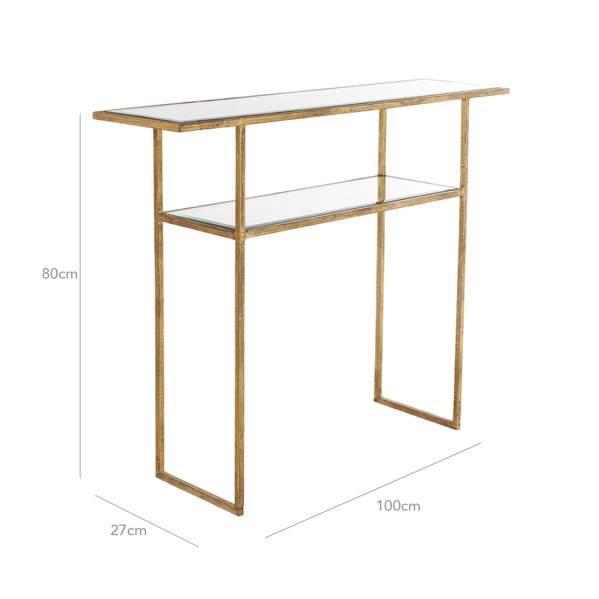 I love this console table for its sleek, minimalist design and the sophisticated sheen of the antiqued glass. It works particularly well in contemporary or eclectic interiors, adding a touch of elegance without overpowering the space. Practical styling tips include using it as anEntryway feature with a statement lamp and a bowl for keys, or as a subtle display area for art or decorative objects in a living room. Its slim profile allows it to fit into narrow spaces, making it perfect for hallways or tight corners while still offering enough surface area for practical or decorative purposes.