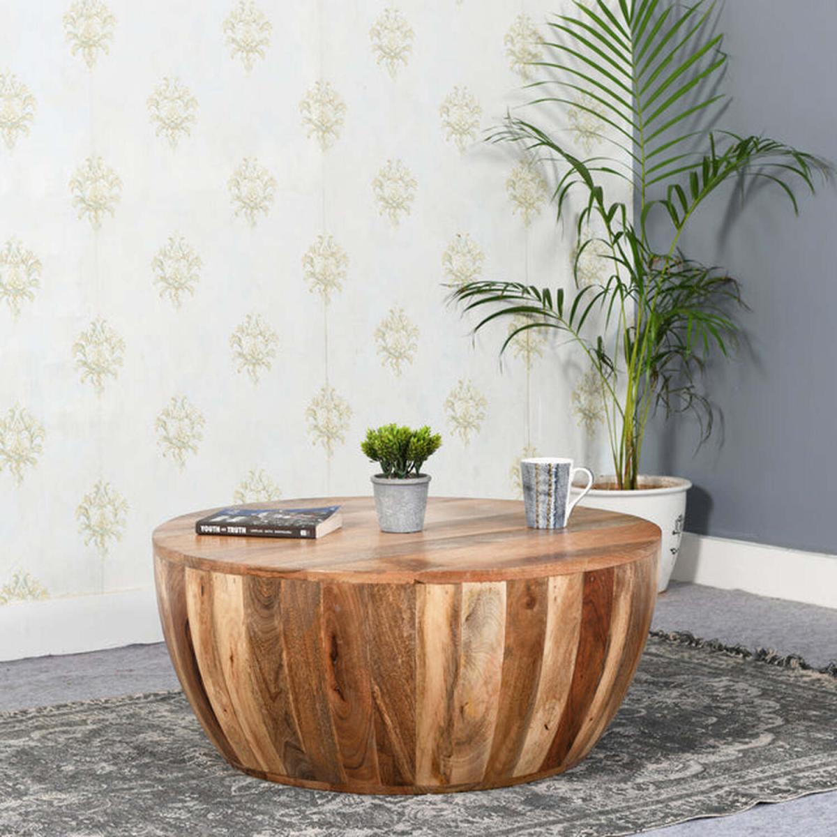 Merlin Large Mango Wooden Drum Coffee Table - Brown