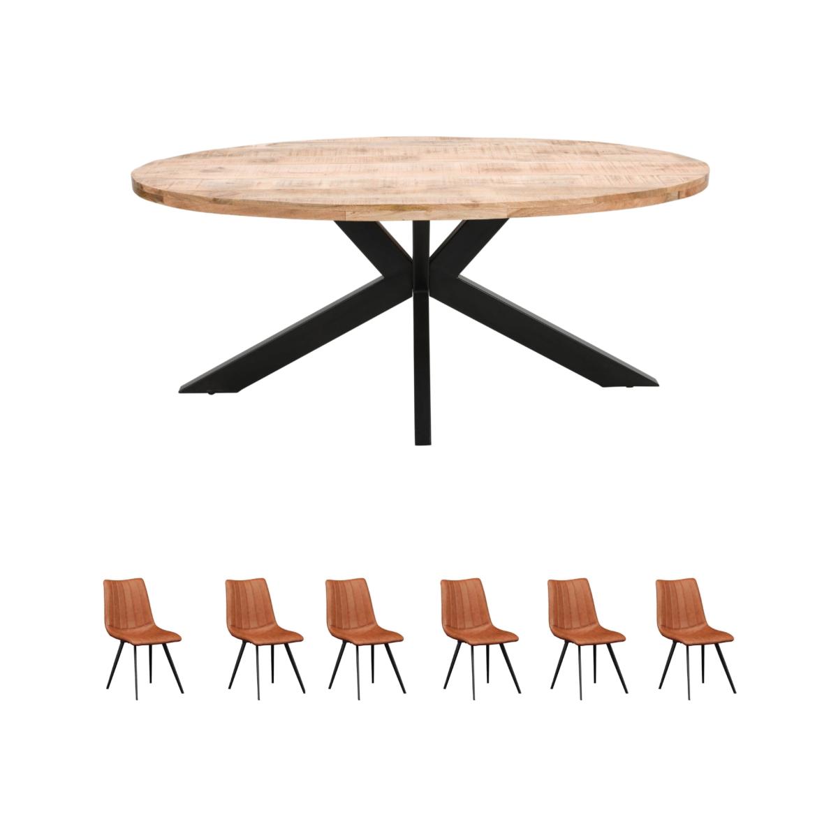 This Merlin Mango Wooden 6-8 Seater Oval Dining Table Set comes with 1 table and 6 chairs. The table measures 180x90x76cm (LxDx. H) and comfortably seats 8, perfect for any occasion. Made from mango wood with a lacquered finish, it's sturdy and durable, and its oval shape provides plenty of space to gather. The set comes with hardware for easy assembly, and its classic design and natural finish match any modern or traditional dcor. The chairs have a contemporary look with striking vertical stitching, plus comfy vegan leather seats that are a breeze to clean. All in all, the Merlin Mango Wooden 6-8 Seater Oval Dining Table Set is stylish, practical, and sure to enhance your dining room.