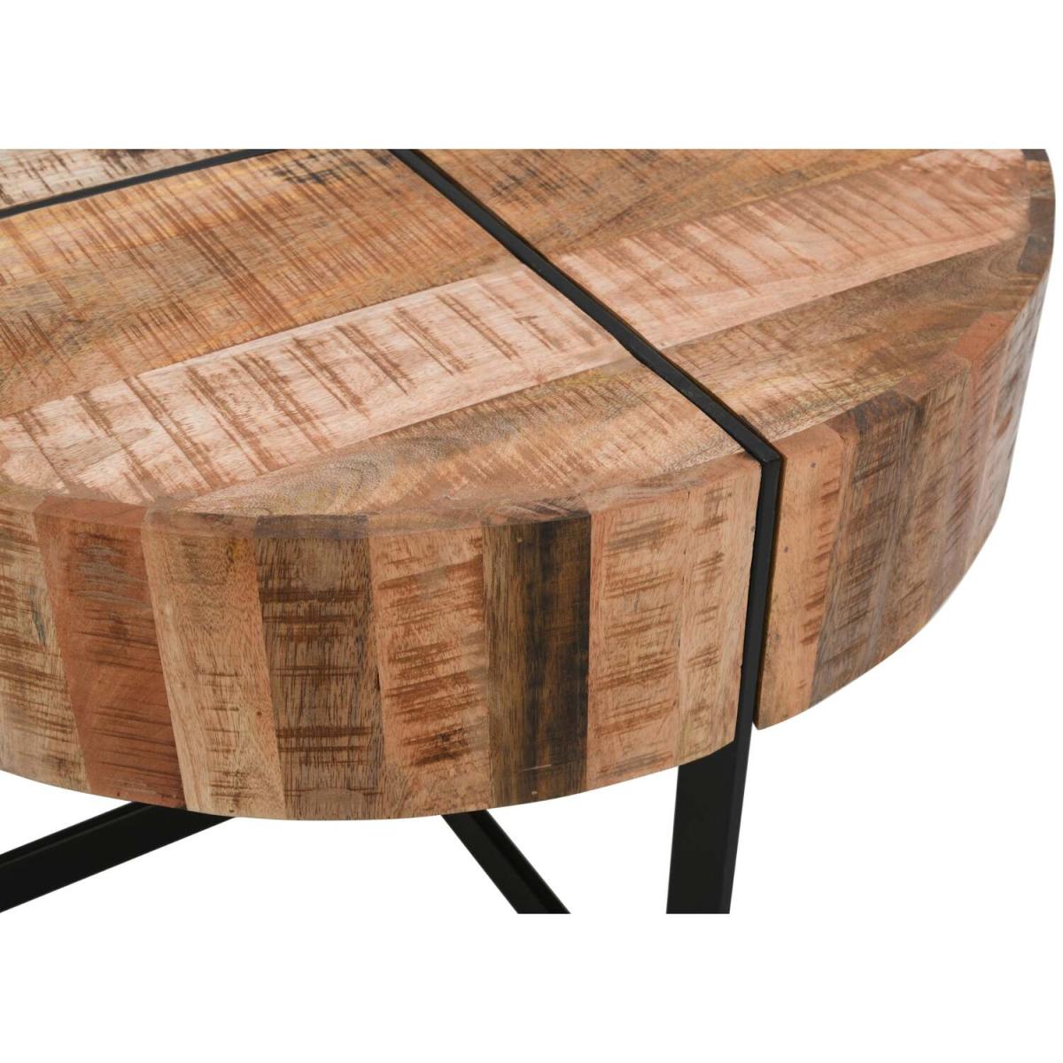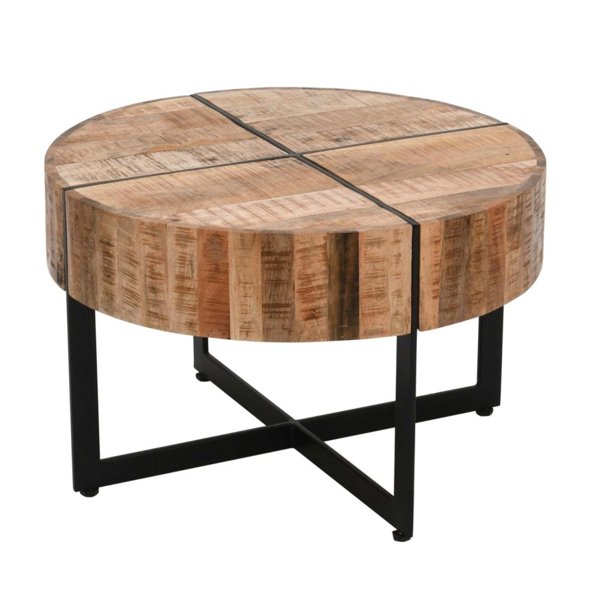 I really like this round mango wood coffee table with its sturdy black metal base - it brings a warm, textural edge to both industrial and Scandi-inspired living rooms. The thick wood top’s natural grain works well against neutral sofas or leather armchairs and the low profile keeps sightlines open, making smaller spaces feel airier. For styling, keep it simple: a small ceramic vase or a stack of art books on a minimalist tray, plus a contrasting textile - think a monochrome jute rug underneath - to ground the look. Its sturdy surface also makes it ideal for daily use, so you can add coasters and a candle or a couple of small planters without cluttering the top.