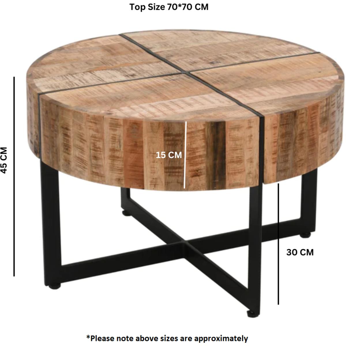 This handmade Merlin Mango Wooden Coffee Table features a modern design with metal legs. The table is made from high-quality mango wood and has a lacquered finish to protect it from wear and tear. The table has dimensions of 70x70x45 CM (LxDx. H) and comes fully assembled, so you can start using it right away. The sleek design of this coffee table makes it a perfect addition to any living room, and its sturdy construction ensures that it will last for years to come.