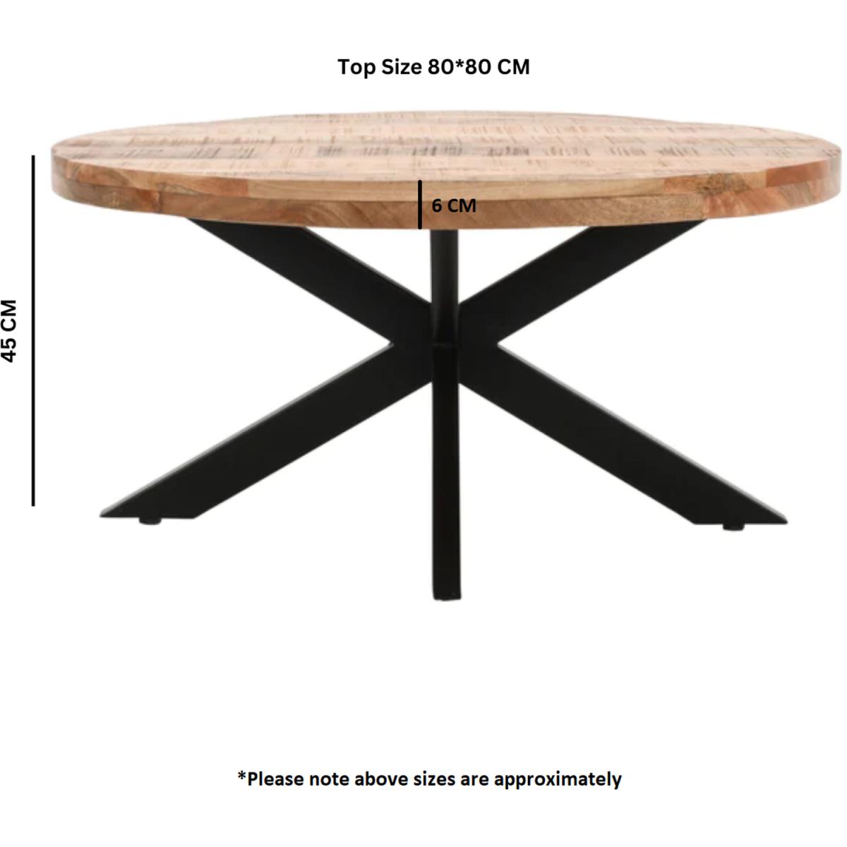 The Merlin Mango Wooden Round Coffee Table Spider Legs is a unique and stylish piece of furniture that will add character to any living room. Handmade from high-quality mango wood, this table is both sturdy and durable. It features a beautiful lacquered finish that adds a touch of elegance to its overall design. Measuring 80x80x45cm, this coffee table is the perfect size for any living room. Its unique spider legs add a modern touch to the design and make it stand out from traditional coffee tables. It requires limited assembly, making it easy to set up in your home. This coffee table is not only functional but also aesthetically pleasing, adding a touch of sophistication to your living room. It is ideal for holding your drinks, books, and other living room essentials. The smooth surface is easy to clean and maintain, ensuring that it looks great for years to come. In conclusion, the Merlin Mango Wooden Round Coffee Table Spider Legs is a beautiful and practical piece of furniture that will enhance the look and feel of your living room. Its unique design, sturdy construction, and elegant finish make it a must-have for any modern or traditional home.