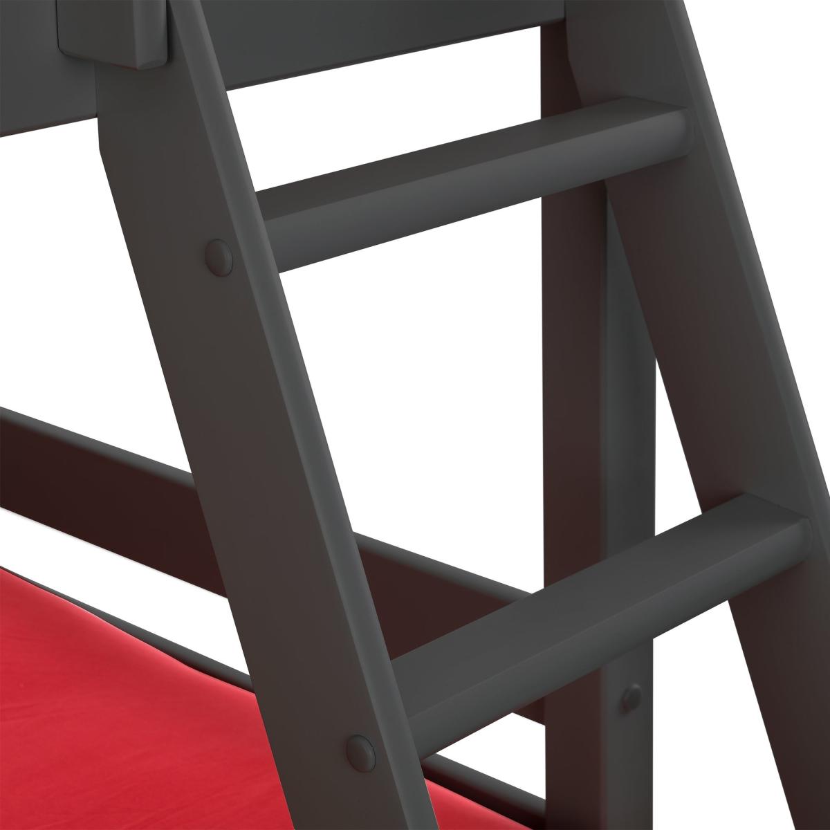 * 1 x Single and 1 x Small Double bred* Sturdy ladder This bed frame offers a stylish and practical solution for families seeking both space-saving and comfort. The sleek grey finish adds a modern touch to any bedroom, while the sturdy frame ensures lasting durability and support. The top bunk is designed to fit a single mattress, providing a compact sleeping space ideal for children or guests. The spacious lower bunk accommodates a double mattress, offering extra comfort and flexibility for a growing child or when hosting sleepovers.