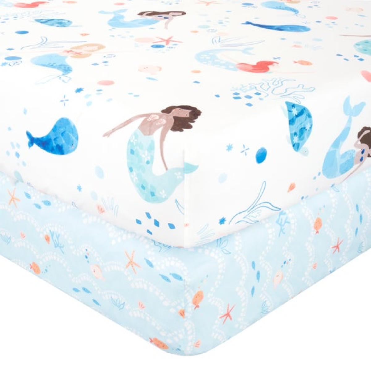 * Mermaid Design * Easy Care * Machine washable * 2 Pack The Mermaid Set of 2 Fitted Sheets is perfect for those who dream of undersea adventures. Featuring enchanting mermaid designs, these sheets are both fun and practical, with an easy-care, machine-washable fabric. The pack includes two fitted sheets for a magical bedding experience. This collection is verified by OEKO-TEX® and independently tested for harmful substances as well as manufactured using sustainable processes under socially responsible working conditions.