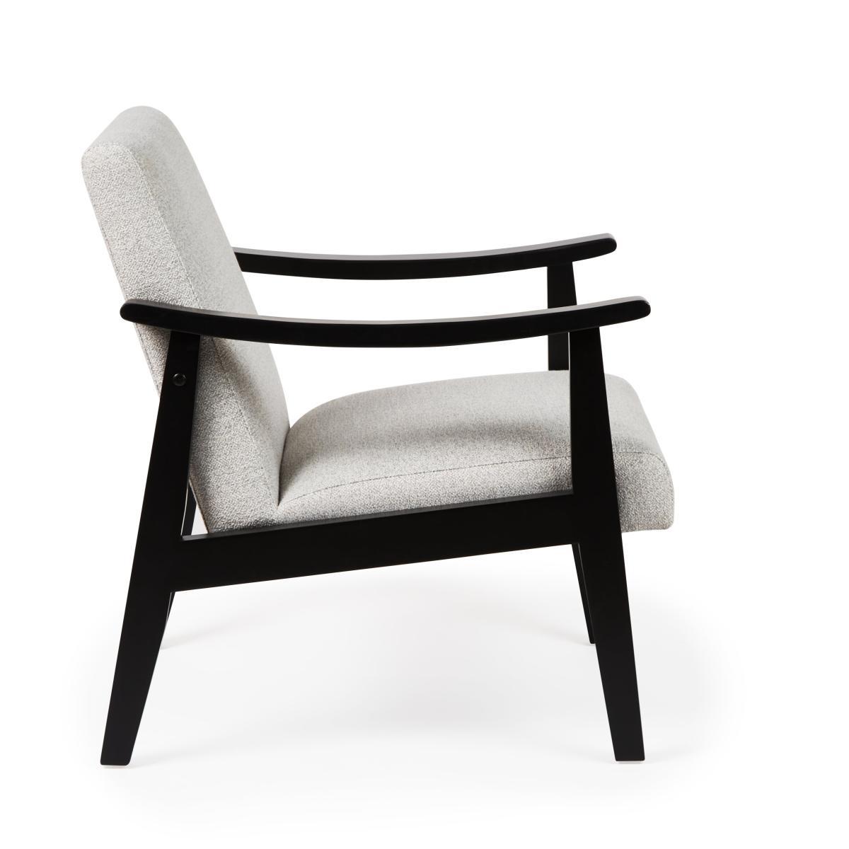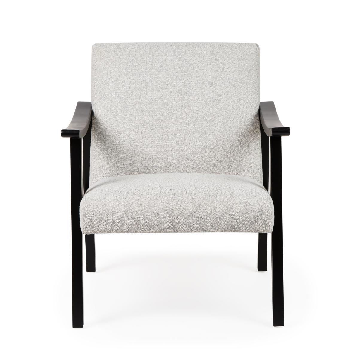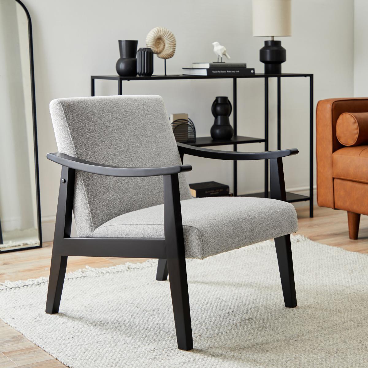 Add a striking centrepiece to your home with this stunning Merrick Boucle Light Grey Armchair, this stylish seating option features a retro-inspired design perfect for any room. The armchair's bold design and contrasting colourway features a clean-lined silhouette, subtle contouring to the frame with a black wood finish and an inviting padded grey seat. The Merrick Armchair is built with stylish and sturdy legs made from solid rubberwood that will last you through the years. This armchair is as comfortable as it is stylish with a foam filled seat and foam-fibre backrest, providing luxurious support and relaxation. The Merrick Armchair is fully assembled. To check out our handy sizing guide to help you find out if you'll be able to get your new furniture into your home.