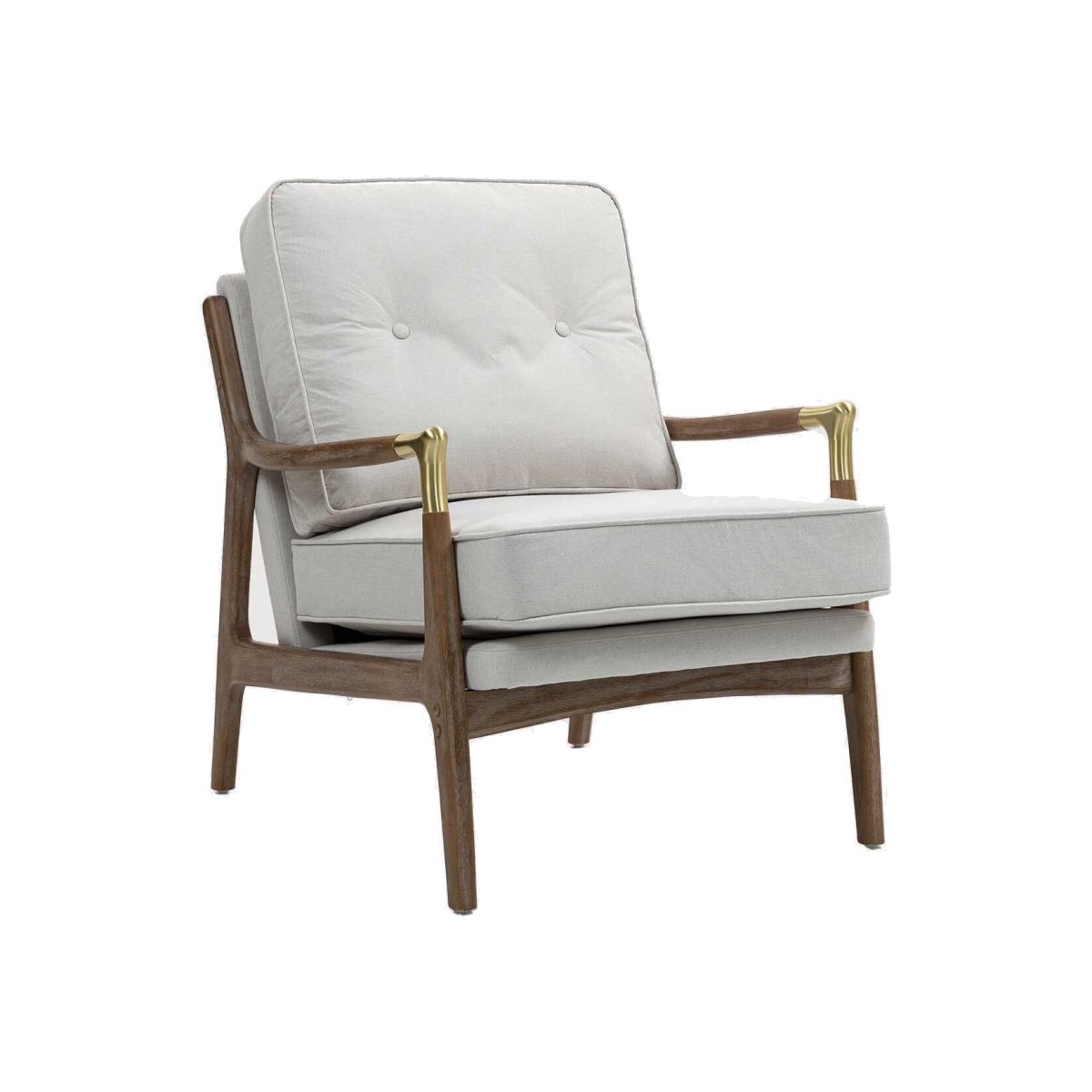 I’m a fan of the Merrin chair for its clean-lined frame and neutral upholstery - it brings a refined, unfussy look to any scheme. The combination of light fabric, solid oak legs and brass detail works equally well in a Scandi-inspired living room, a pared-back mid-century setup or even a modern country lounge. To style it, position beside a slim timber side table and a low-profile floor lamp for a reading nook. Add a textured throw or a geometric cushion in muted green or navy to introduce depth without overpowering its calm palette. Its removable covers also mean you can refresh the look seasonally.