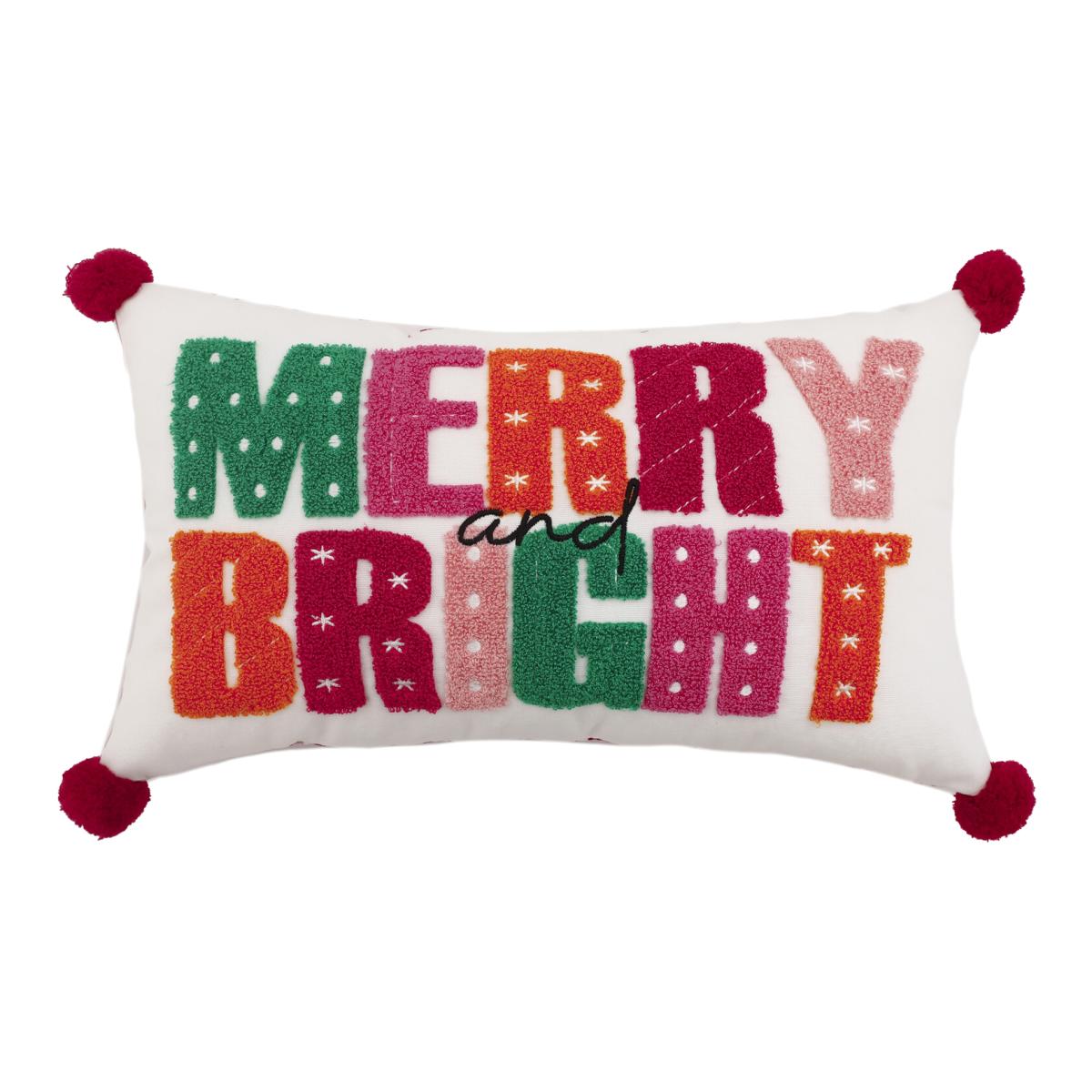 Get ready for the Christmas season with the Merry and Bright Slogan Cushion. Vibrant and cheerful, this cushion flaunts a 'Merry and Bright' slogan in a lively colour scheme across a white background. Perfect accessory for holiday decor, nestle this cushion on your bed to give your room a Christmassy look.