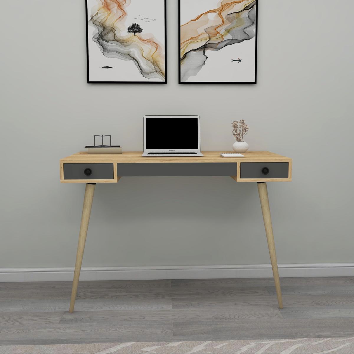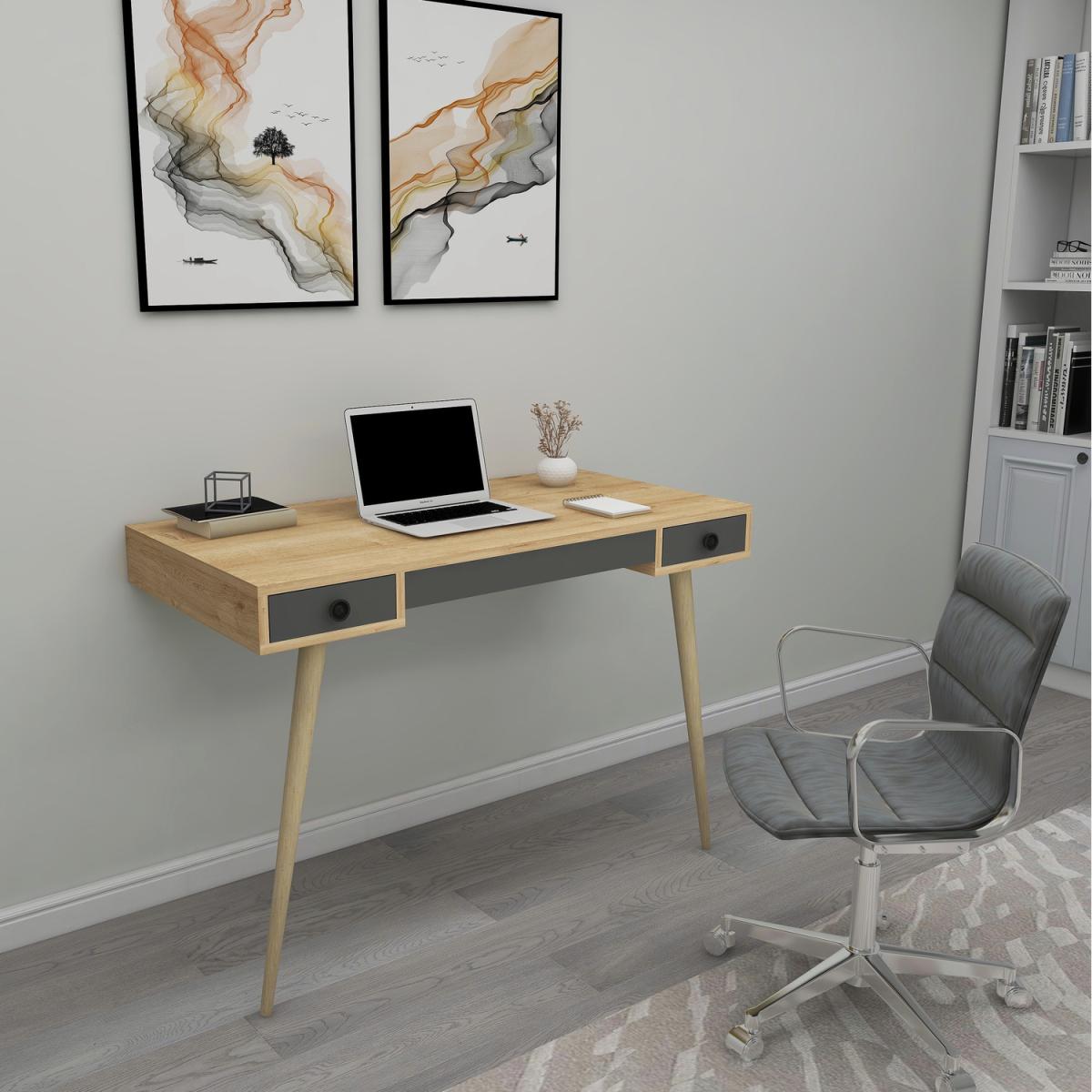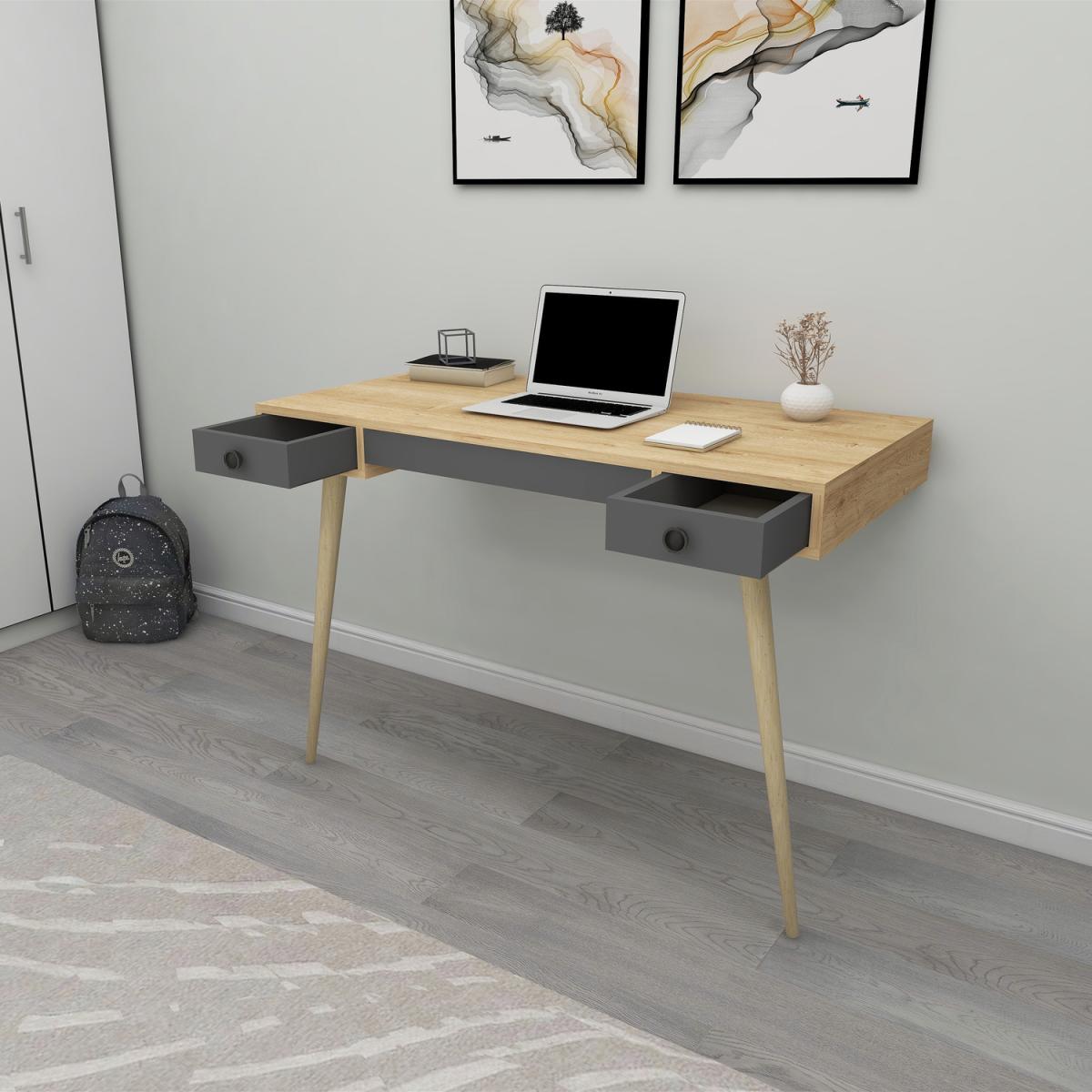 MATERIAL The computer desk is made of an 18 mm thick quality melamine-coated particleboard. Legs are solid beechwood. The manufactured wood surface is water-resistant to some extent and the edges are banded with PVC edge banding tape. The drawers are designed in classic style without metal slides. They are secured with a metal plastic pin which prevents them from falling. First-class assemblyinstallation hardware and accessories are used. Our products are produced from certified quality raw materials that do not contain carcinogenic substances and comply with European Union health norms. CLEANING You can clean your furniture with a dry cloth. Avoid prolonged contact of your product with moisture and water. ASSEMBLY The product will be delivered to the customer in the original package as disassembled. It is designed to be assembled by the customer using a power drill and screwdriver. Assembly instruction and installation hardware are included in the package. For fast and error-free installation, product parts are numbered with stickers in accordance with the assembly guide.