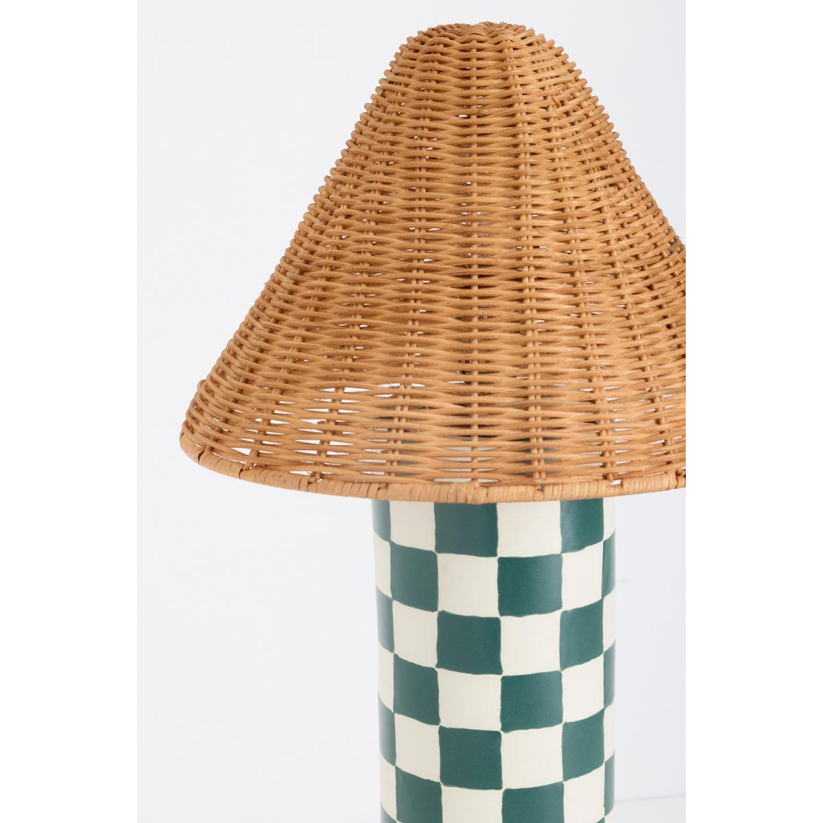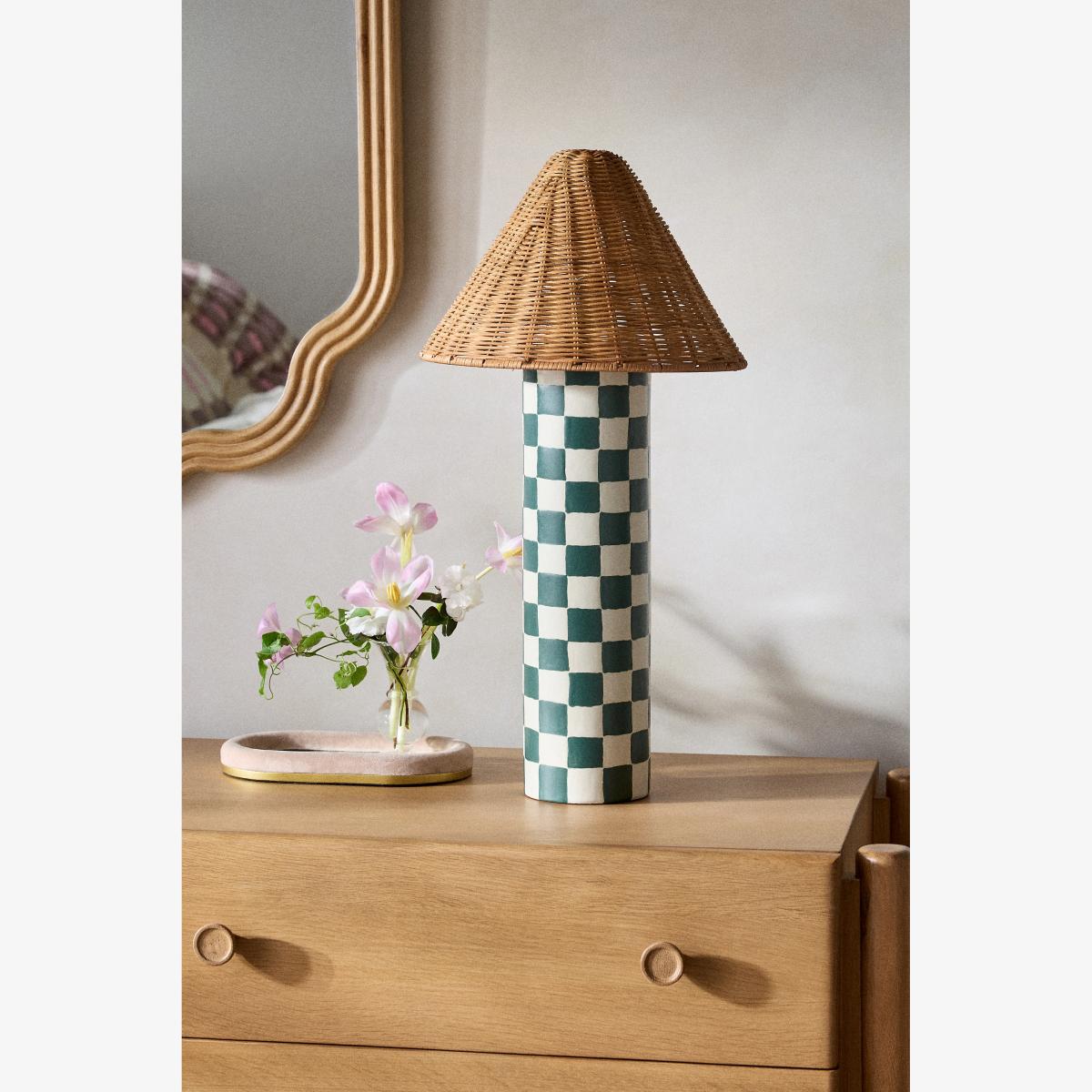 I love this lamp because of its playful checkered base paired with the natural rattan shade, creating a lovely mix of texture and pattern. It works particularly well in eclectic or bohemian interiors, where it can add a touch of colour and visual interest on a bedside table or sideboard. For styling tips, I suggest pairing it with other natural materials like wood or woven textiles to enhance its earthy vibe, and keeping surrounding accessories minimal to let the lamp stand out. It’s a versatile piece that can lift both modern and vintage-inspired spaces with ease.